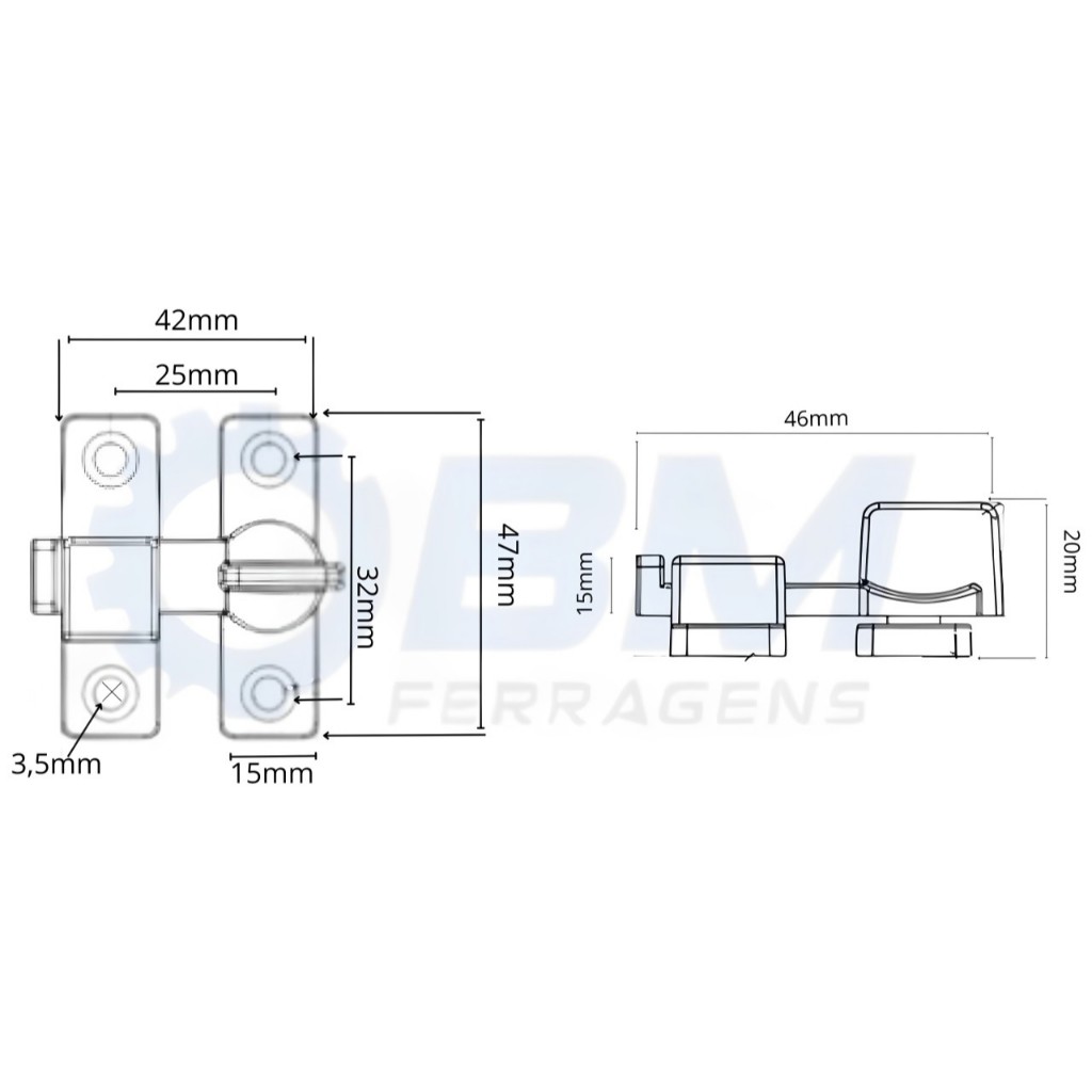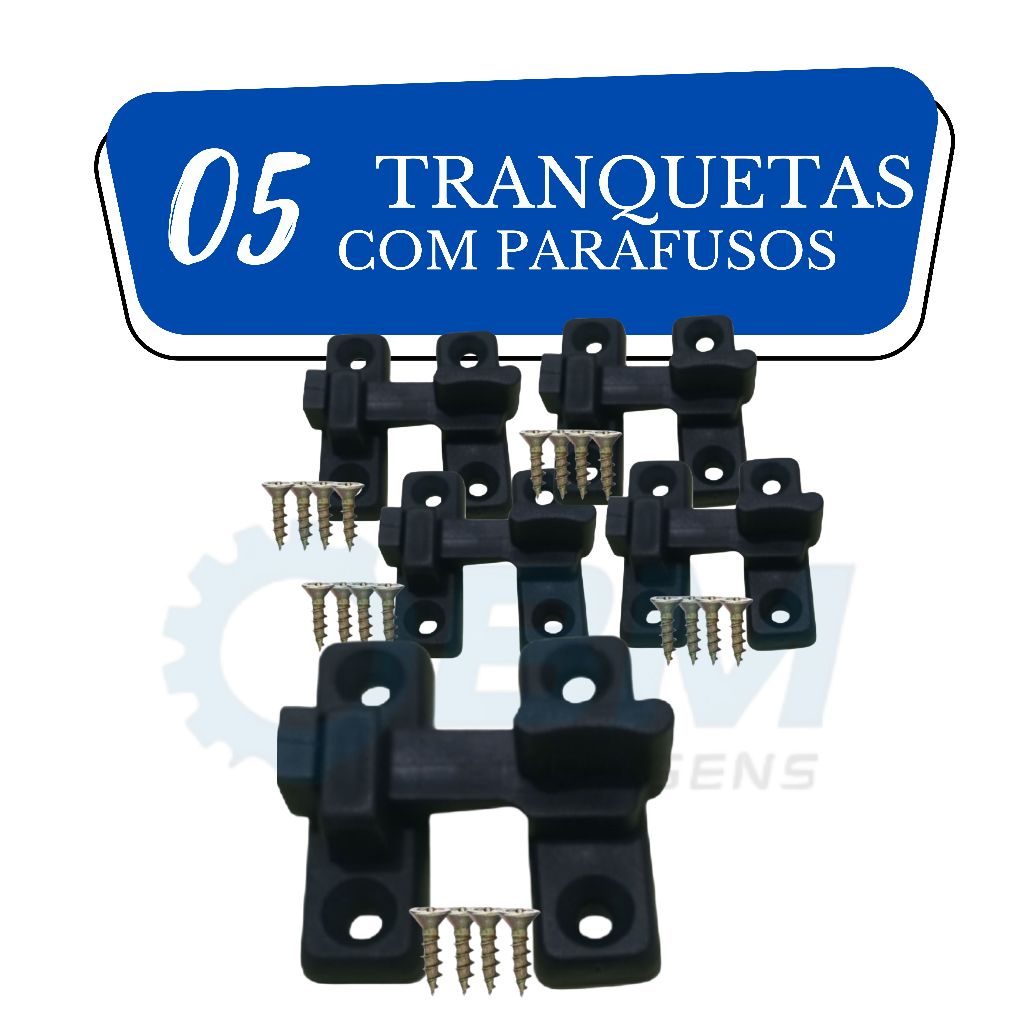 Trinco Fecho Tranqueta Plástica 5 peças P/ Portas Sanfonadas e Janelas