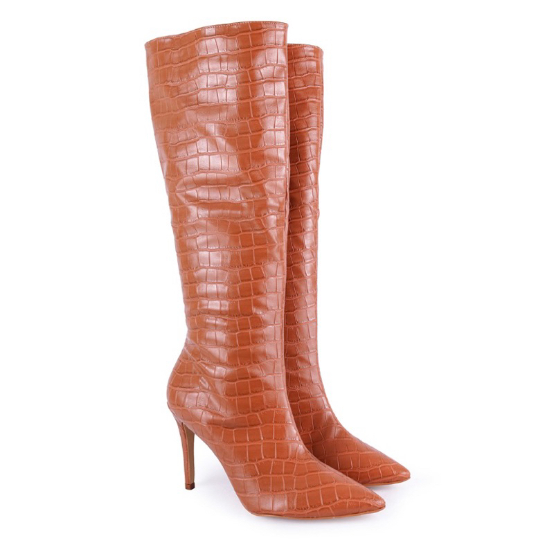 Bota feminina cano longo salto alto fino