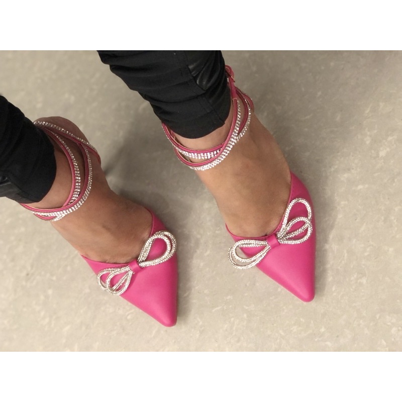 Sapato feminino scarpin luxo laço strass salto alto tendência