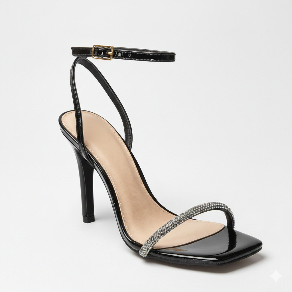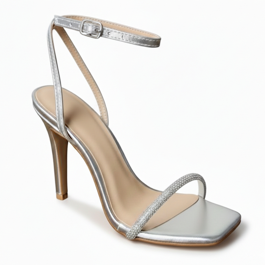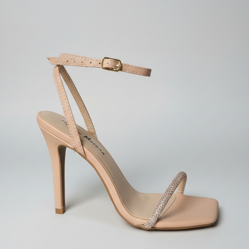 Sandália feminina salto fino alto abotoar strass brilho festa