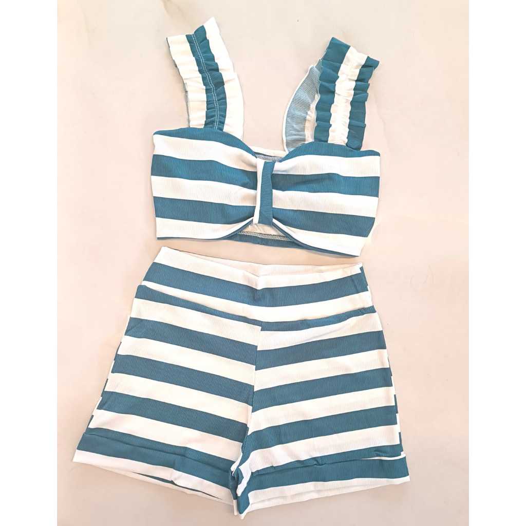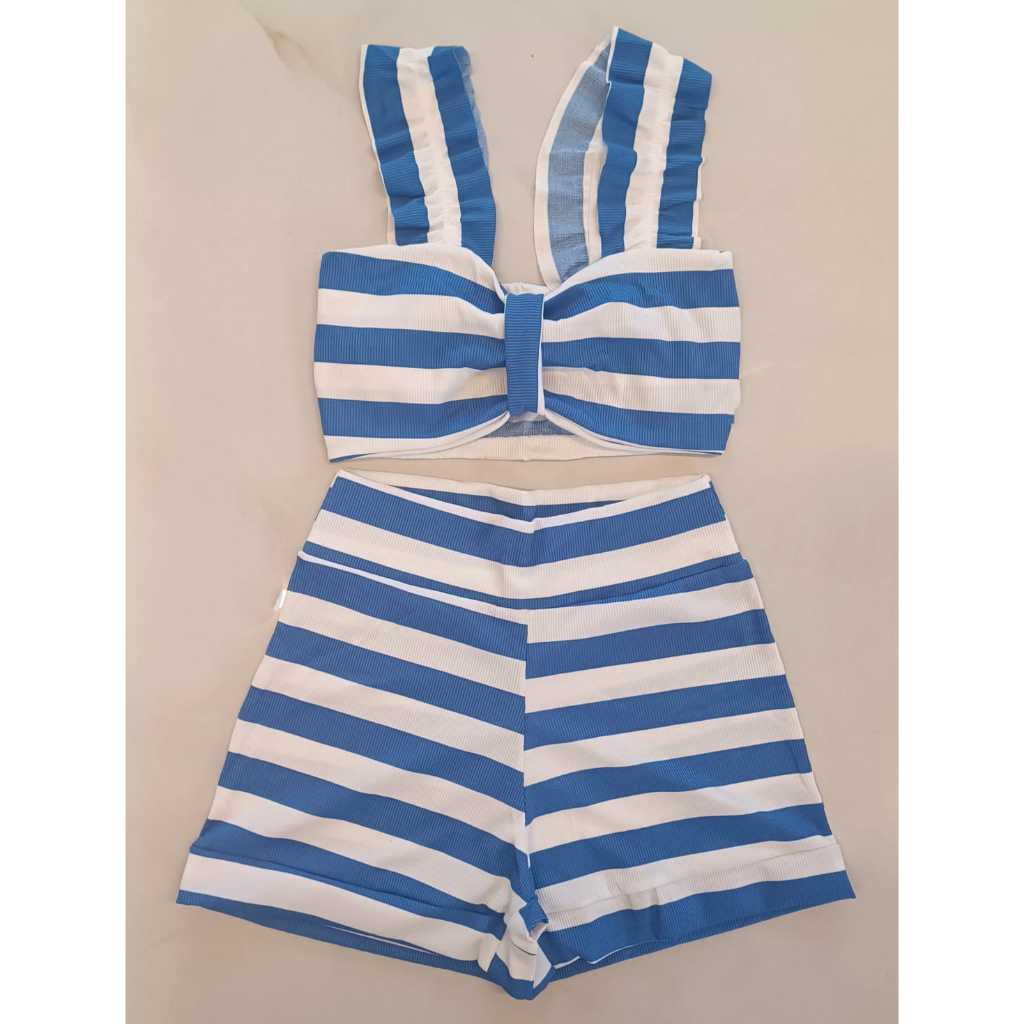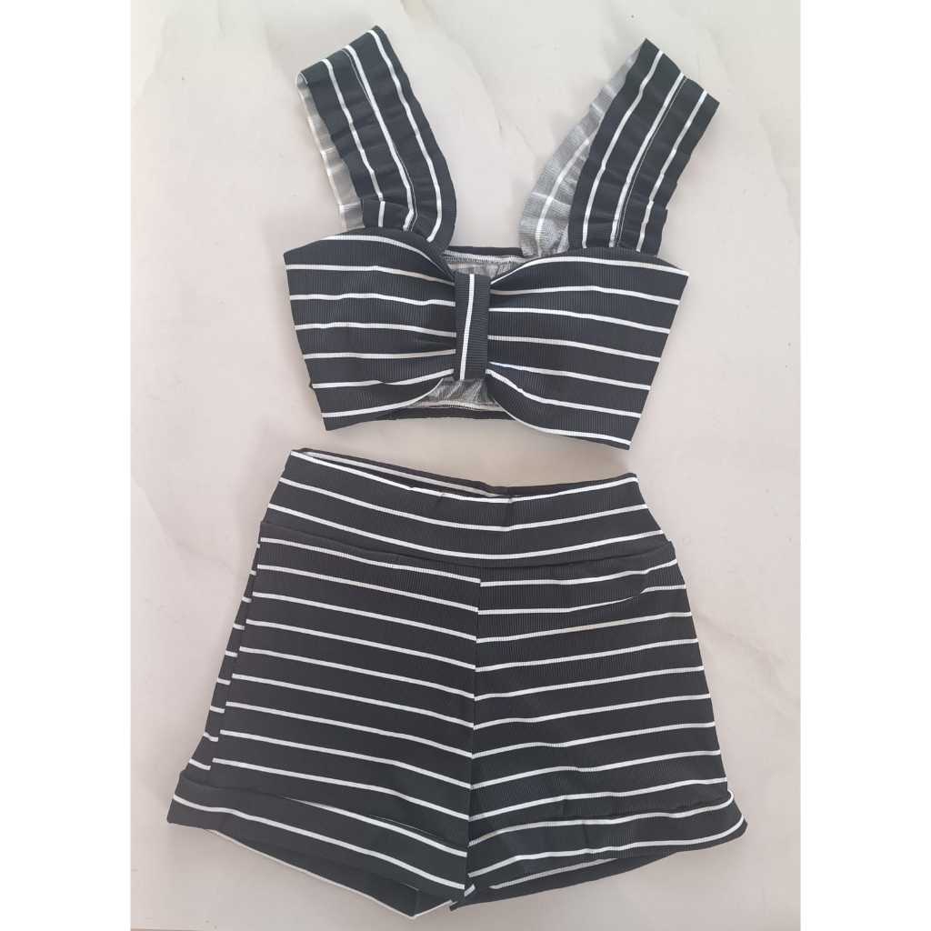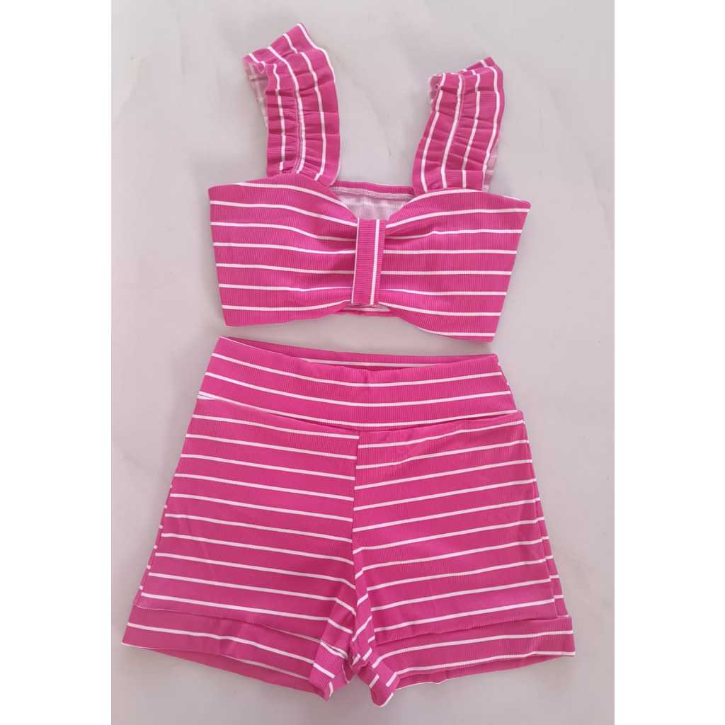 Conjunto Feminino Canelado Short Curto + Top Cropped Modinha Blogueira