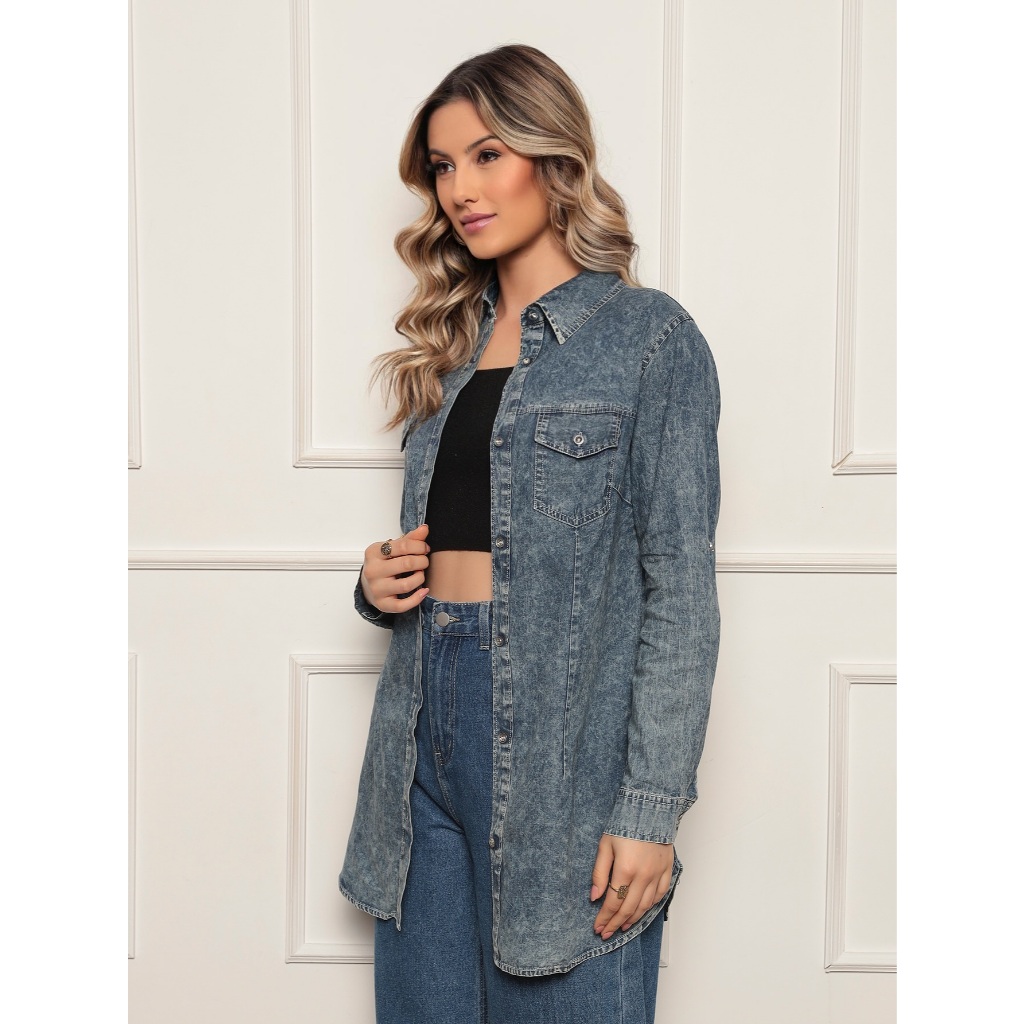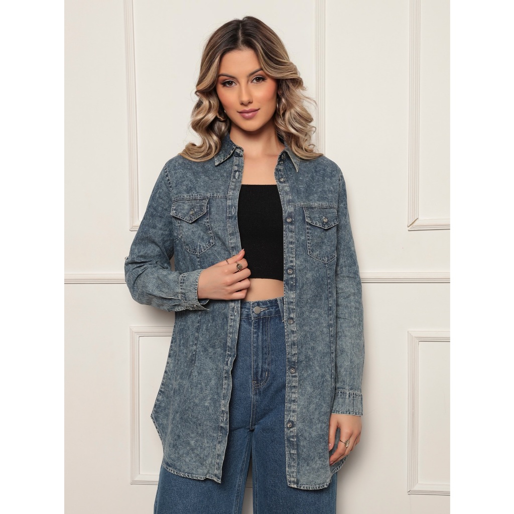 Camisola Jeans Feminina Manchada Casual