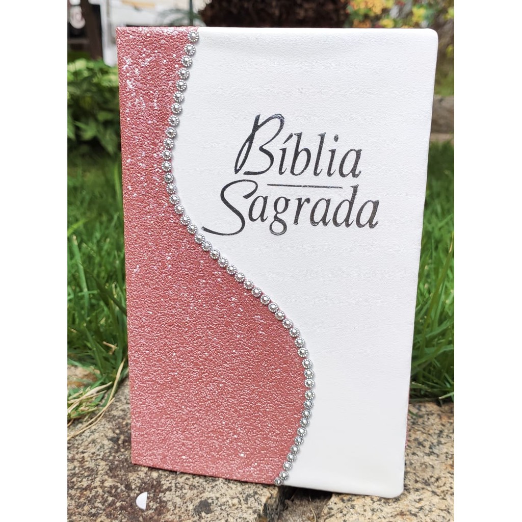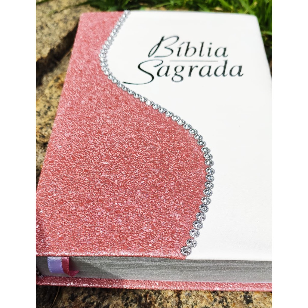 Bíblia Sagrada Glitter perolas feminina letra gigante (17) Rosa goiaba