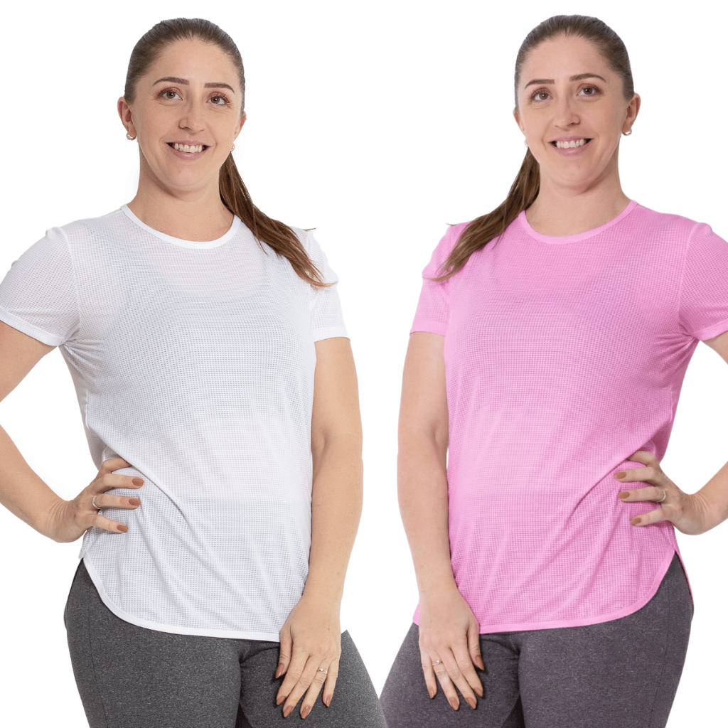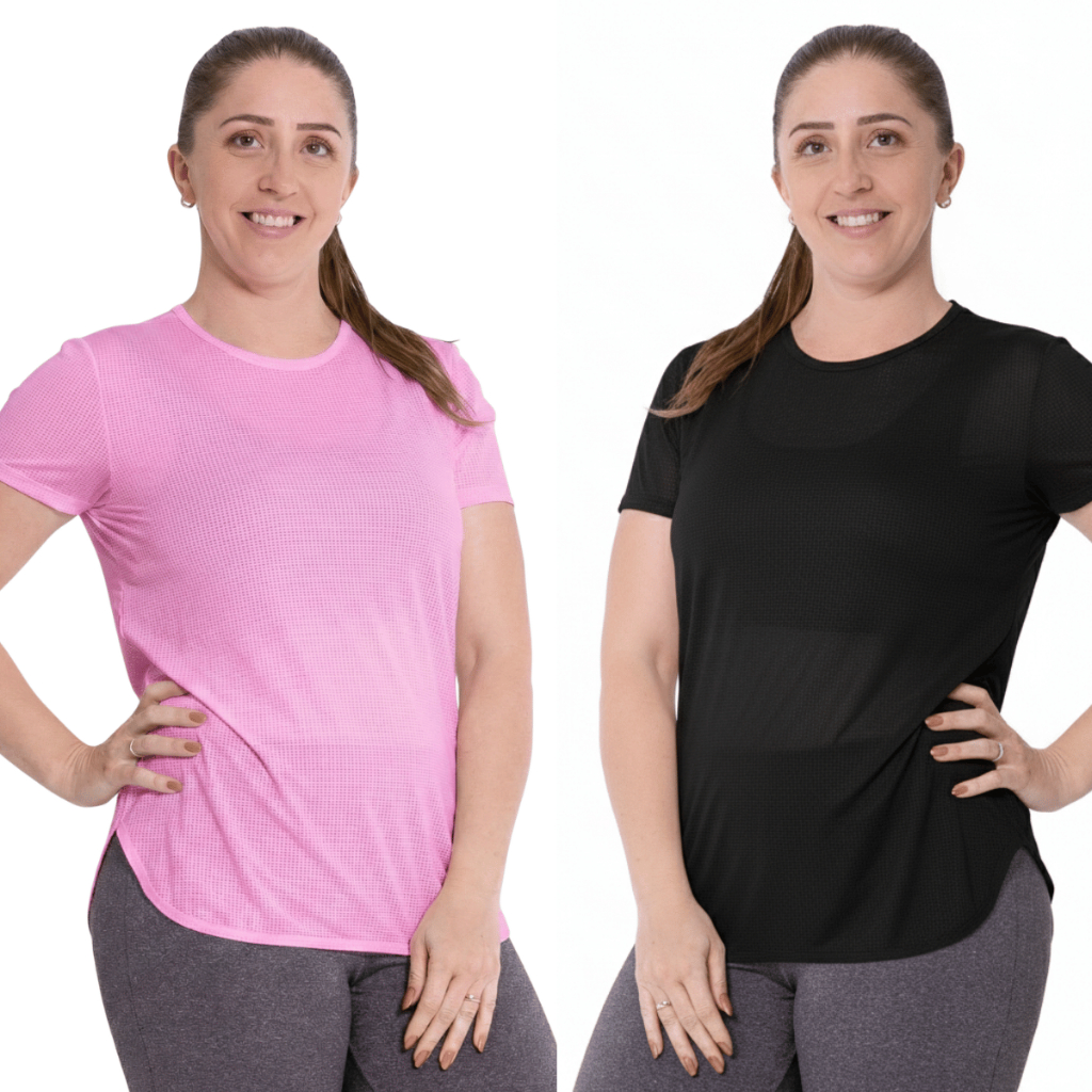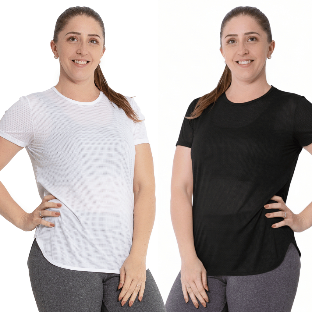 Kit 2 Camiseta Academia Furadinha DryFit Anti Suor, Anti Odor, Dia a Dia Blusa Feminina P M G GG