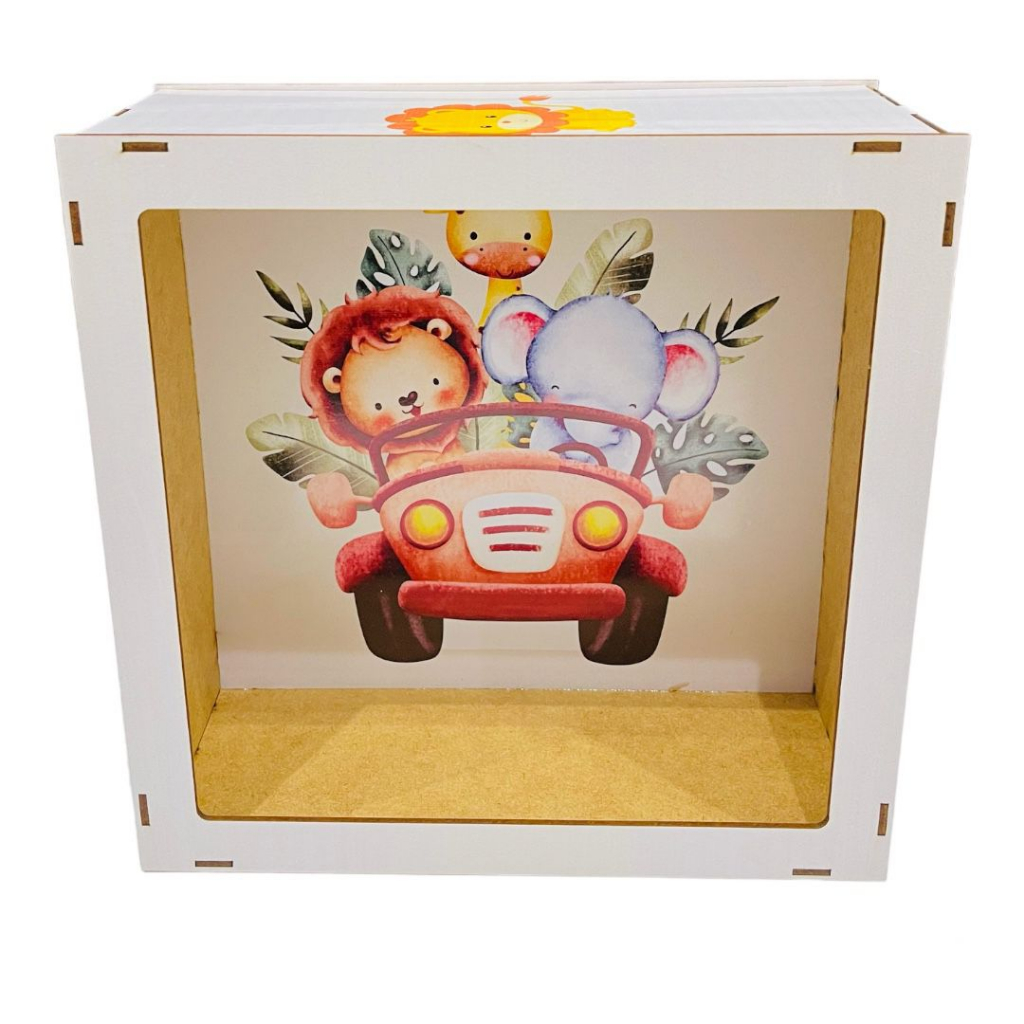 Kit 3 Nicho Quadrado de Parede Quarto do Bebê Montado Safari Bichos