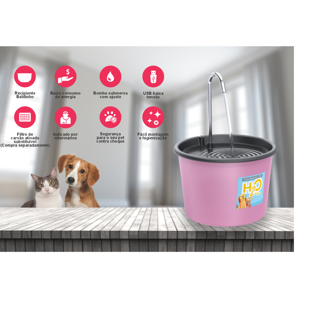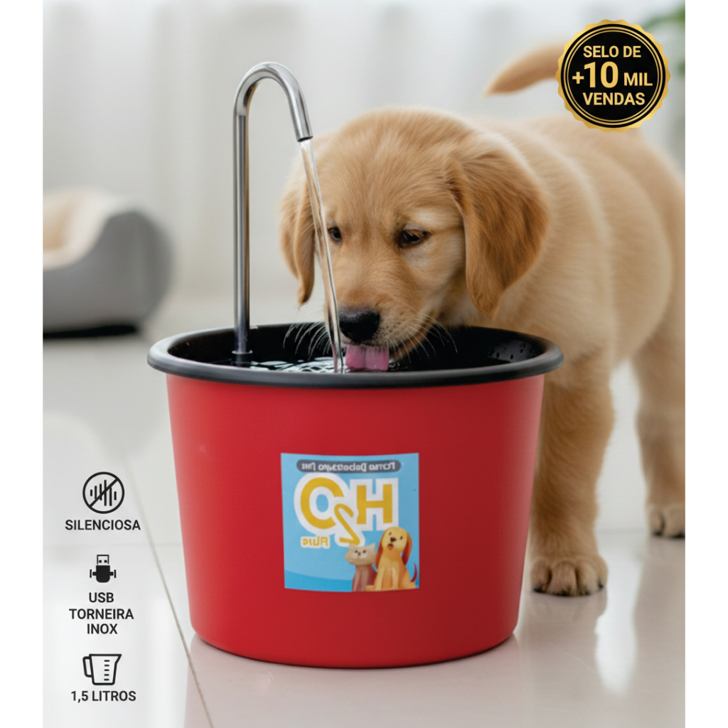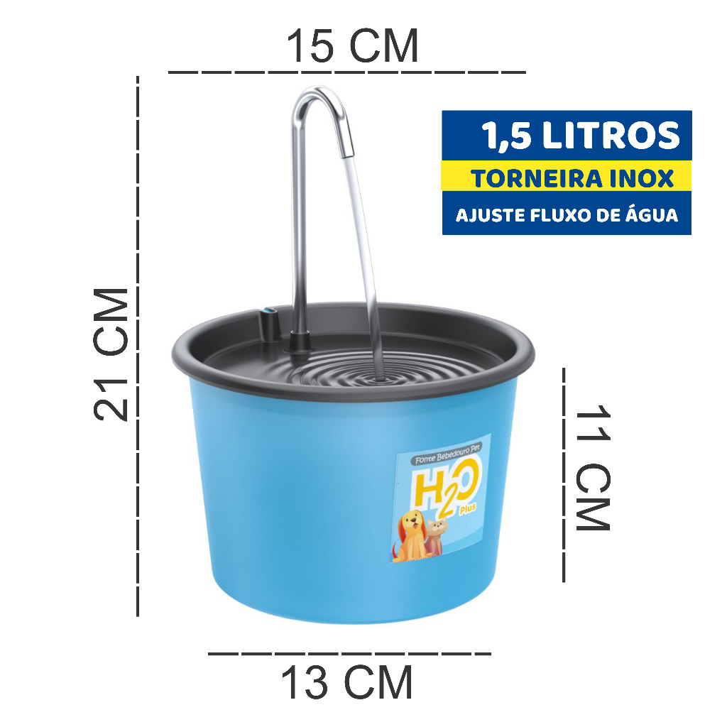 Fonte Bebedouro H2O Plus para Cães e Gatos de 1.5 Litros com Torneira Inox