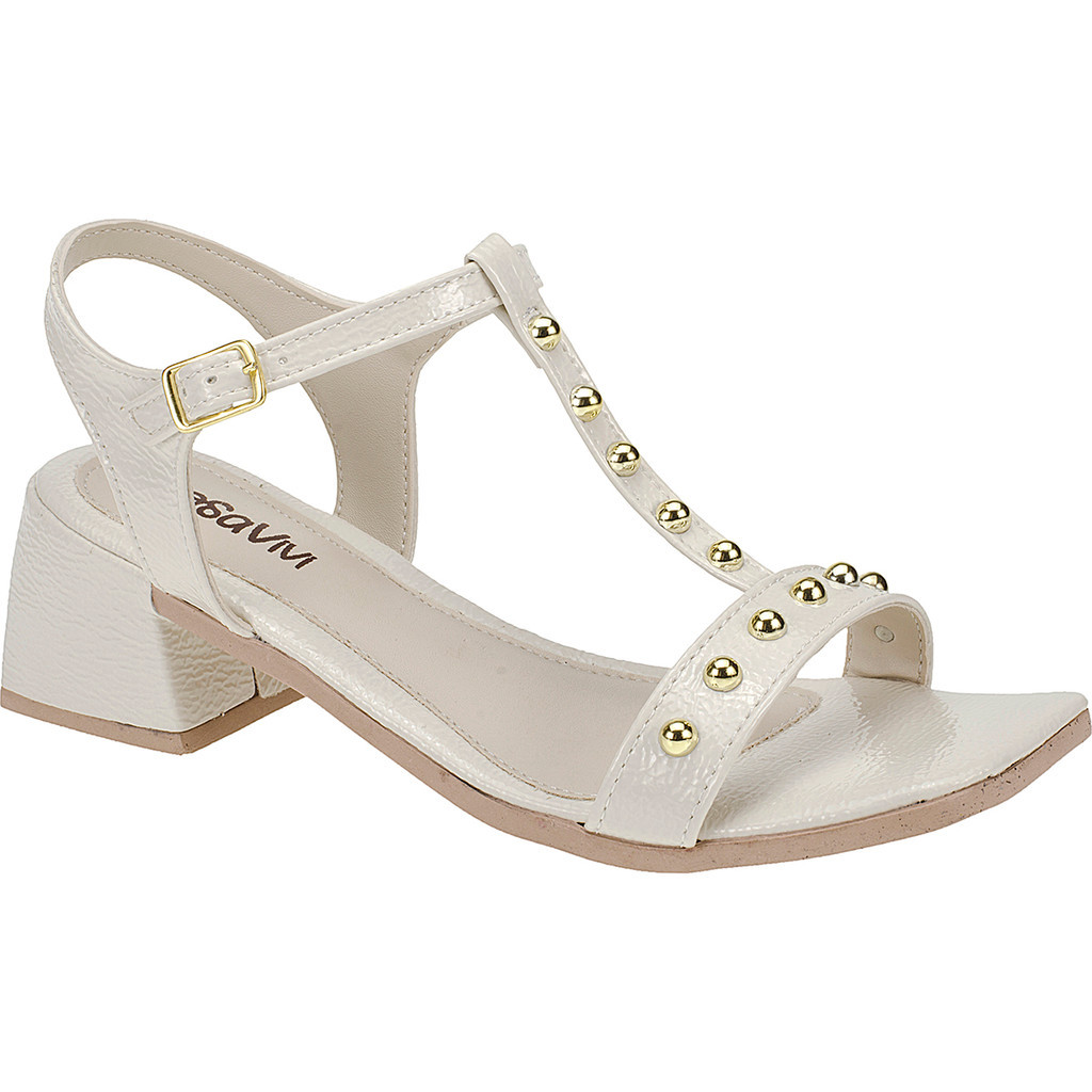 Sandália Feminina Rosavivi Salto Bloco 5,0cm Enfeite Metalizado Tiras Ajuste Fivela 095.005