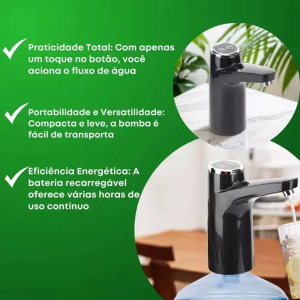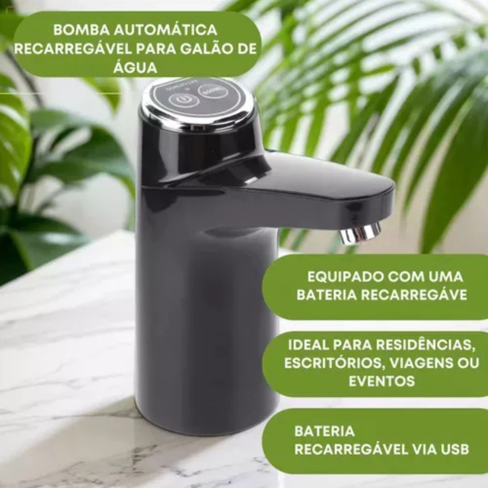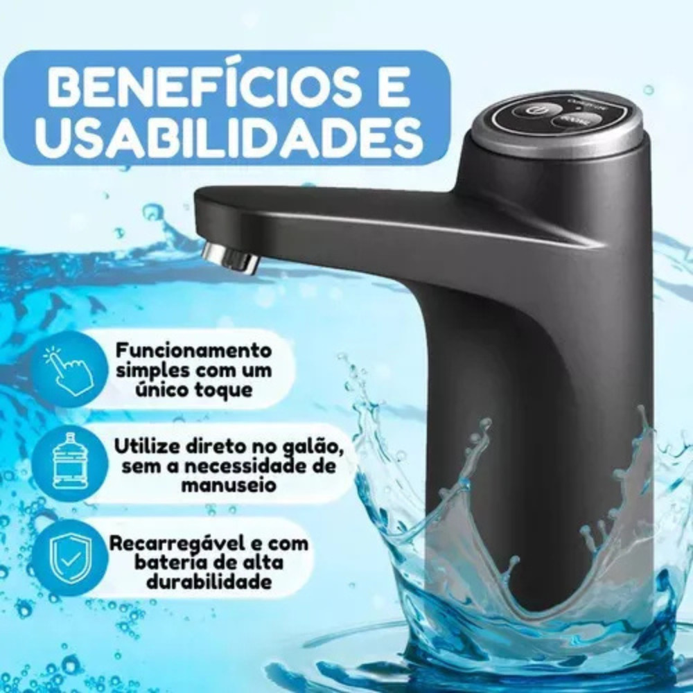 Bomba Elétrica Recarregável p/ Galão de Água com Torneira USB Portátil, Silenciosa, Prática e Ideal.