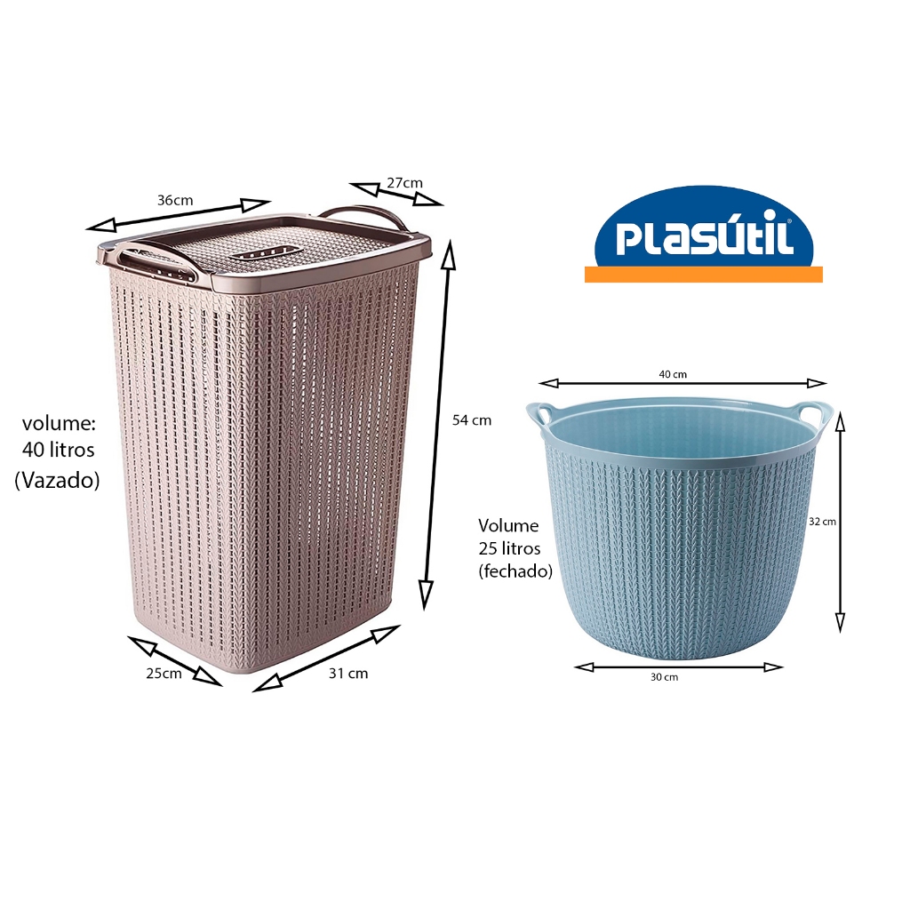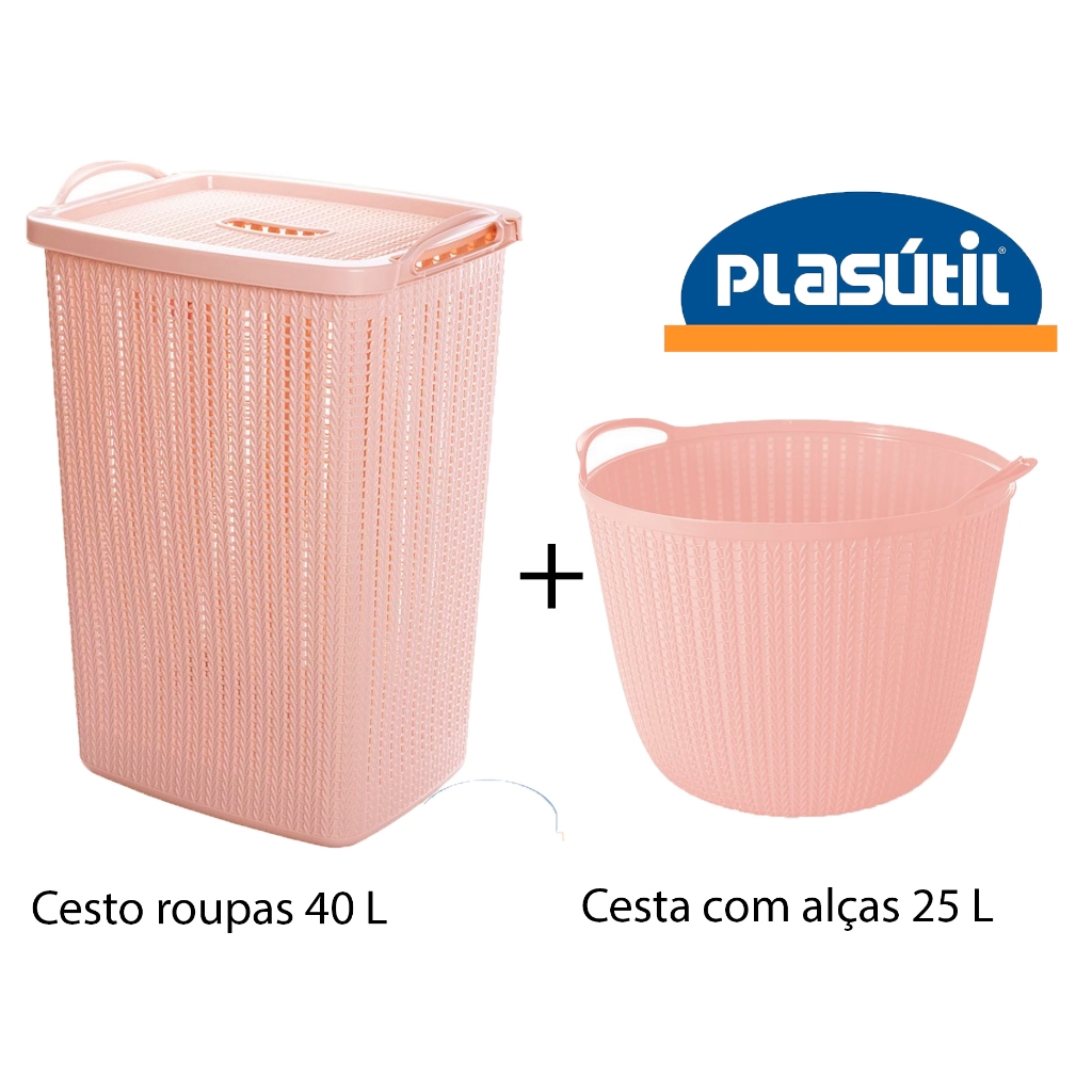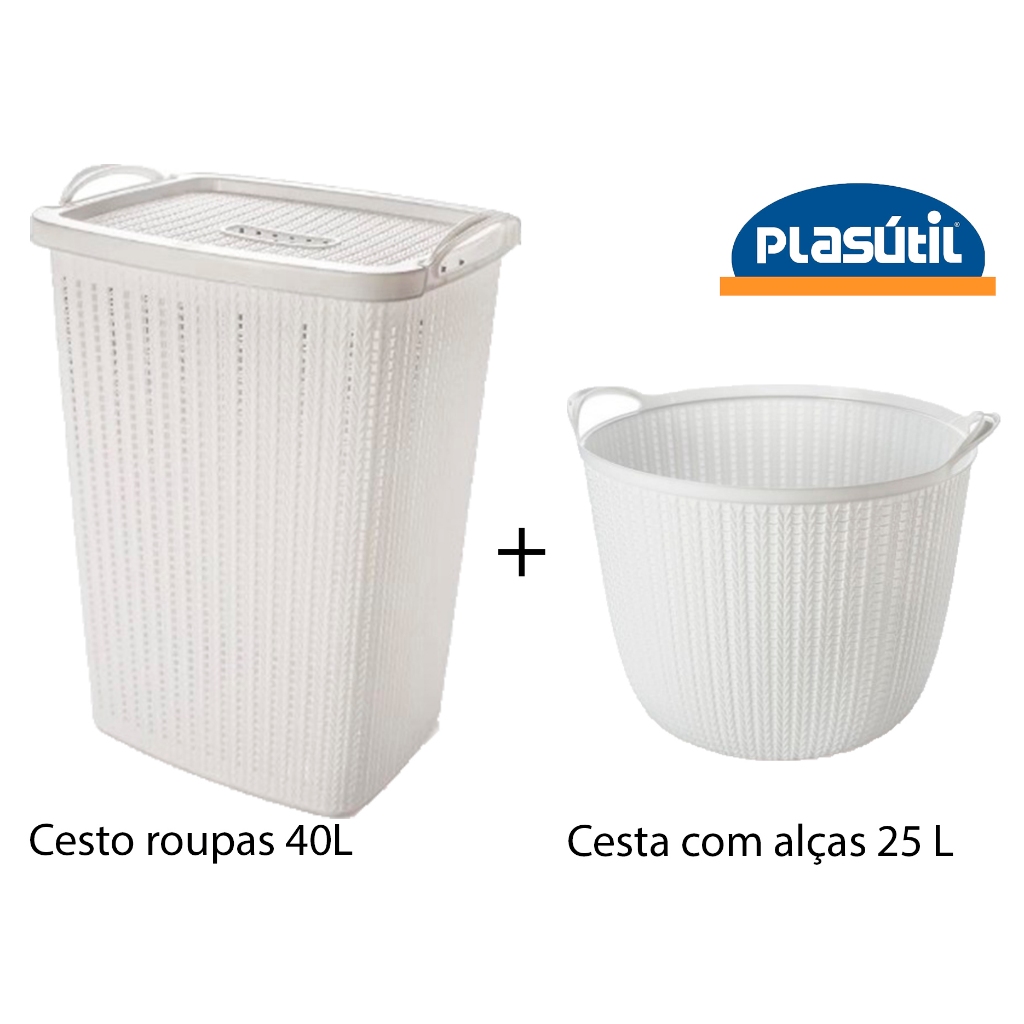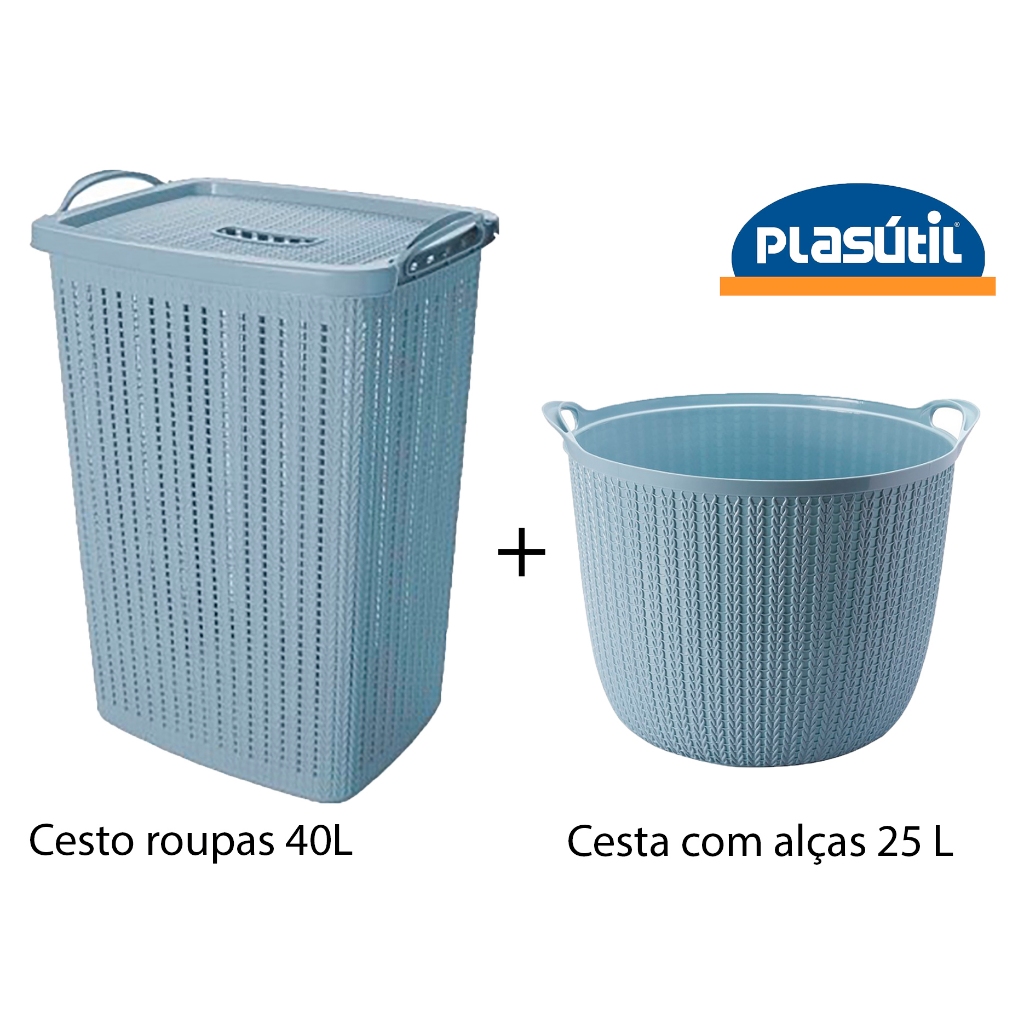 kit lavanderia com CESTO ROUPAS VAZADO 40 litros + CESTA COM ALÇAS 25 litros - especial PLASÚTIL