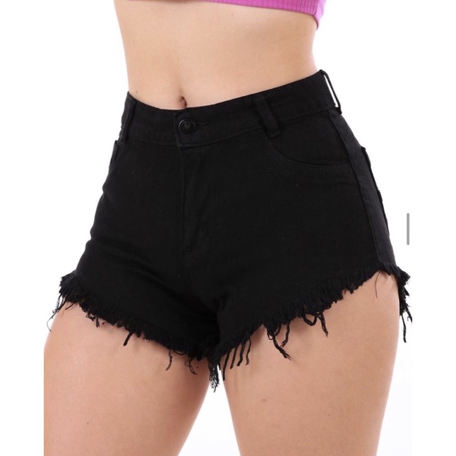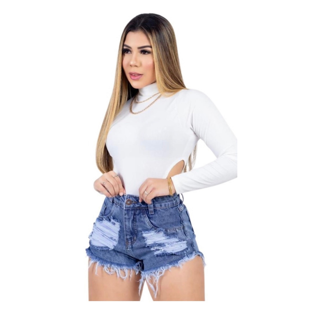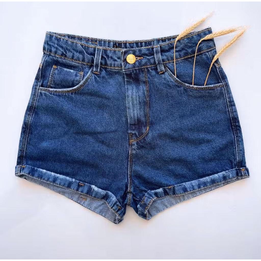 Shorts Jeans Bermuda Feminina Cintura Alta Cós Alto Destroyed Desfiado Blogueira