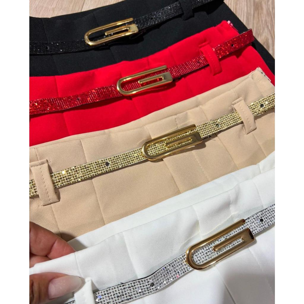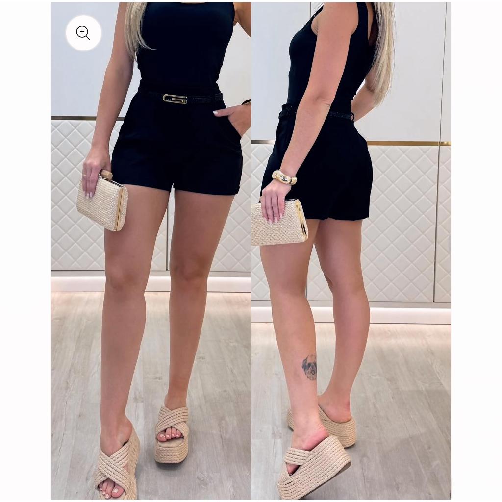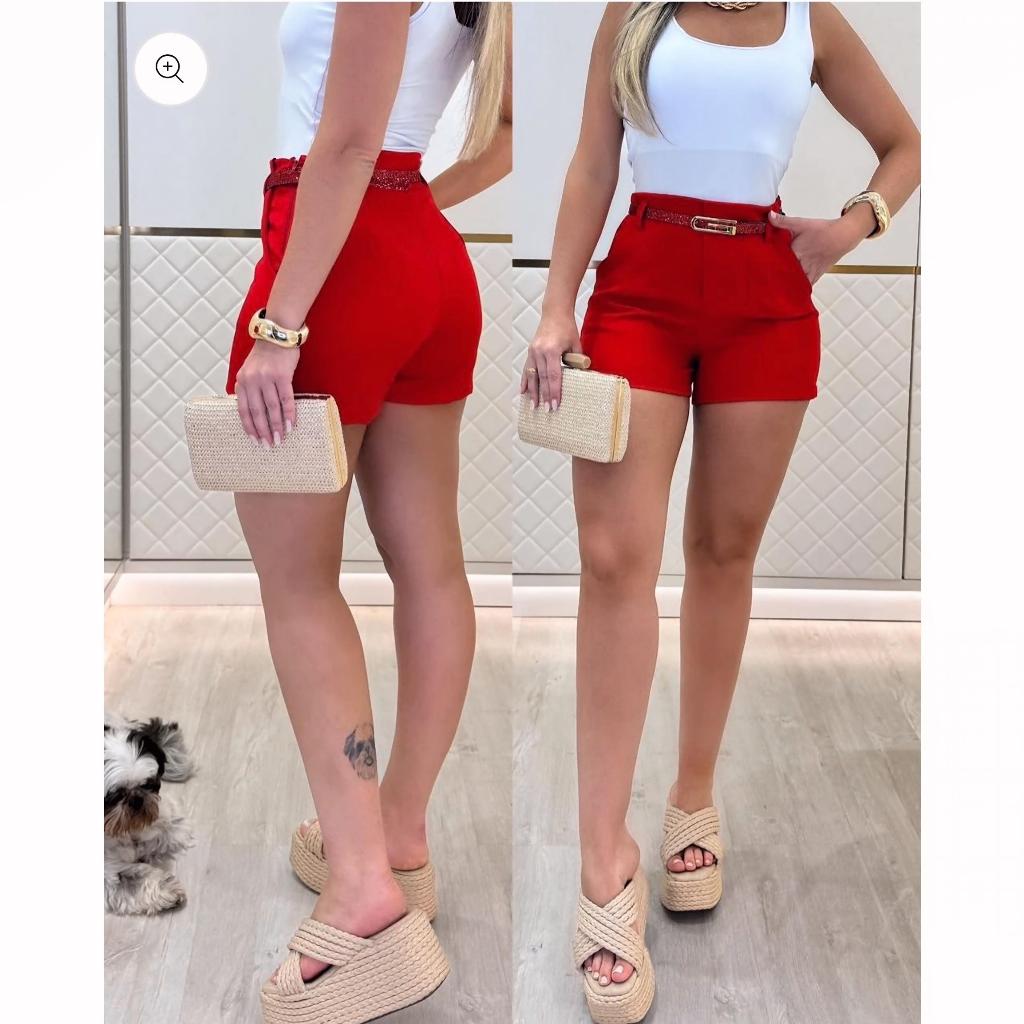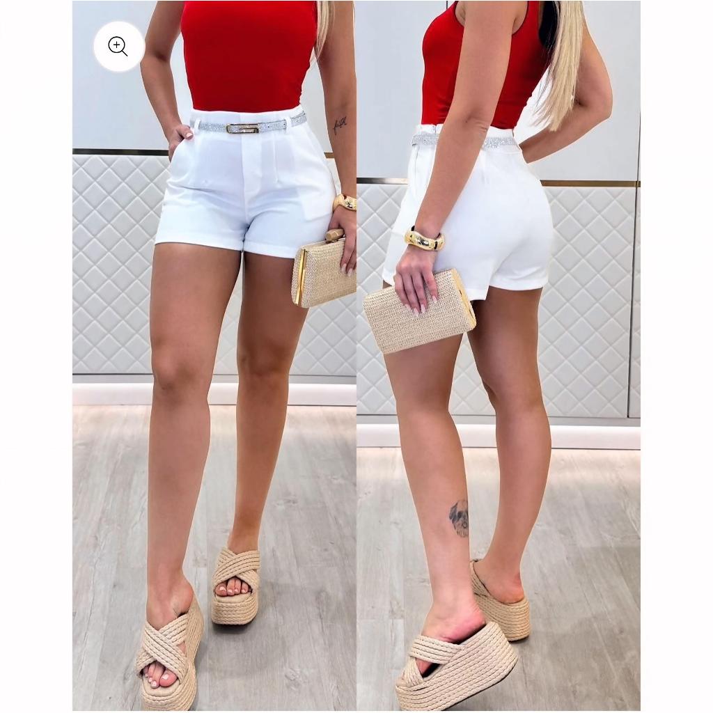 Short Feminino Alfaiataria Zara Com Cinto Brilhante Brilho Cintura Alta Ziper Na Lateral Social