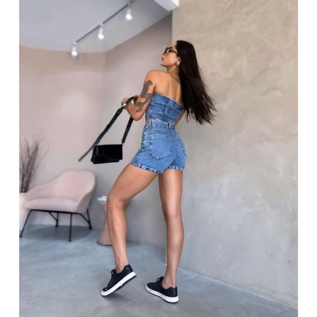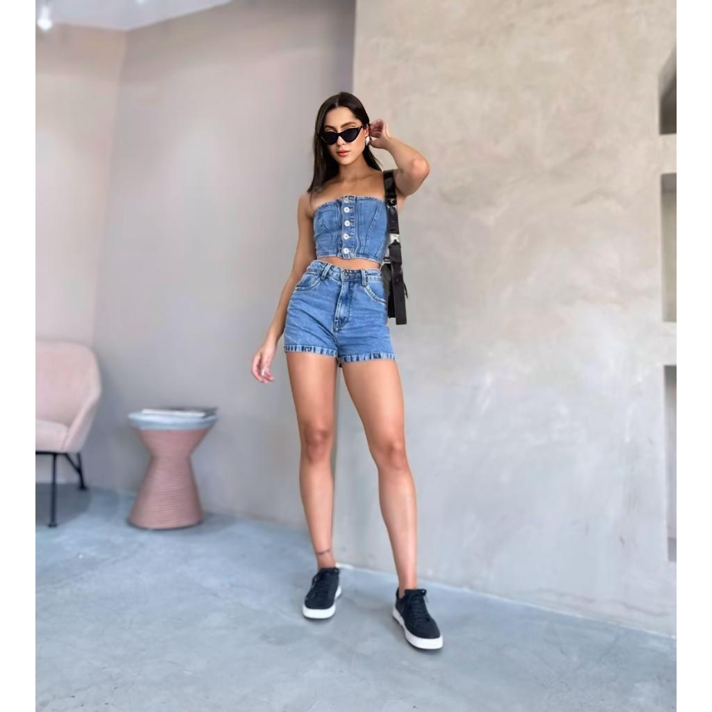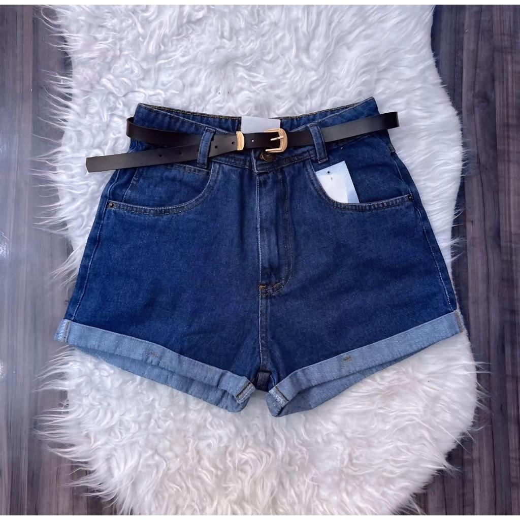Short Jeans Feminino Cintura Alta Barra Virada Sem Lycra Blogueira