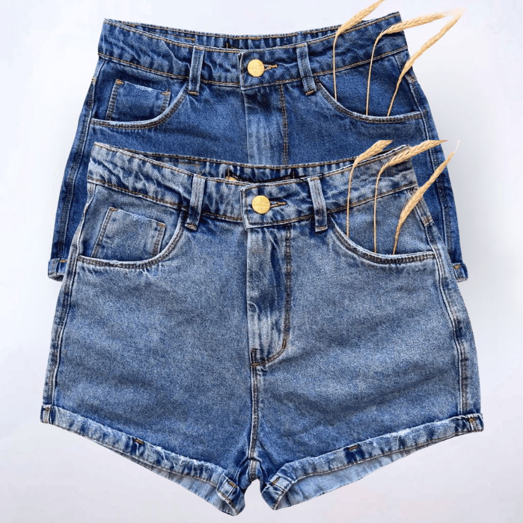 Short Jeans Feminino Cintura Alta Barra Virada Sem Lycra Blogueira Tendencia