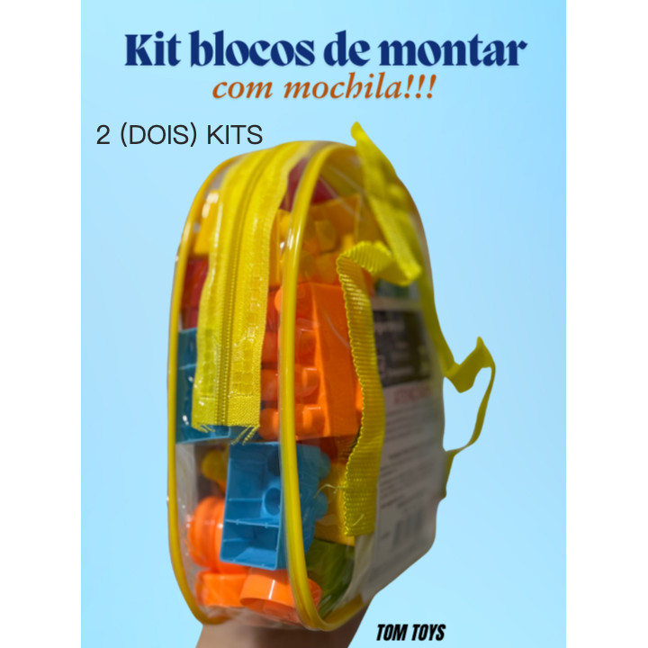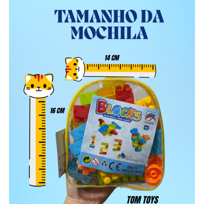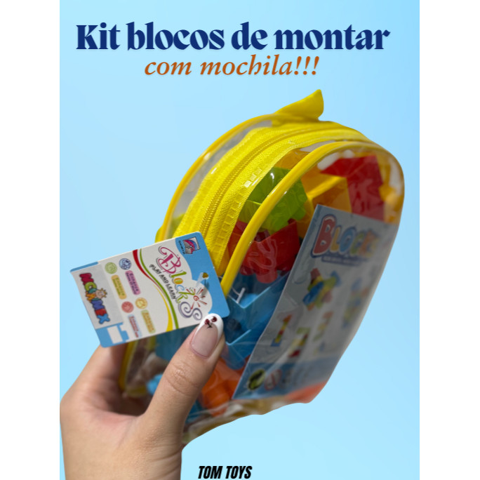 Mochila Blocos de Montar Infantil Brinquedo Educativo Plástico Colorido 35 Peças Encaixar Coordenação Criatividade