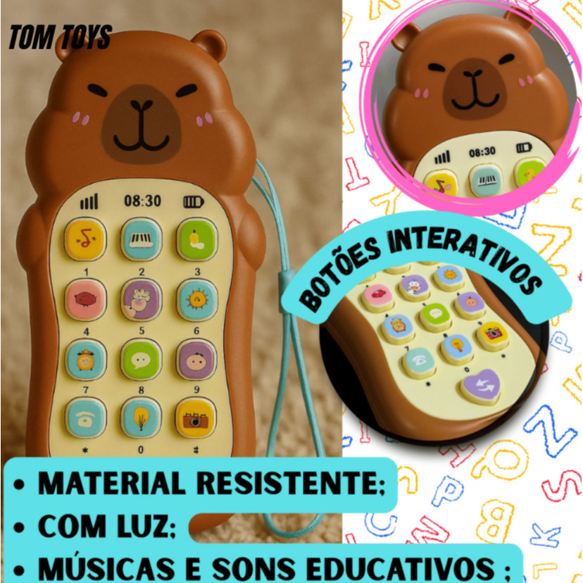 Celular Telefone Interativo Capivara ou Coelho coelhinho Infantil com Sons e Músicas Educativas