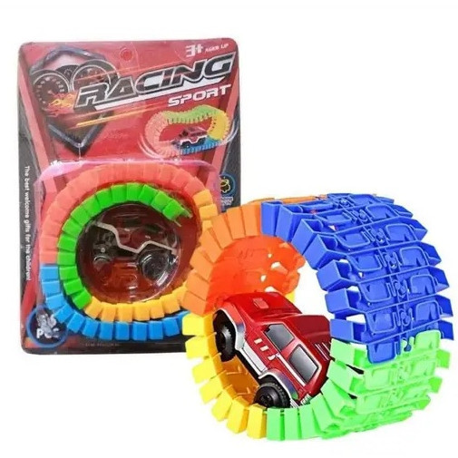 Pista Trilho Mágica Maluca Monte 56 Peças Carrinho Com Luz - Racing Sport