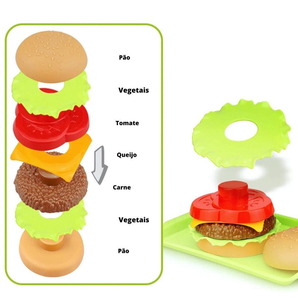 Brinquedo Infantil Comidinha Hambúrguer Montável