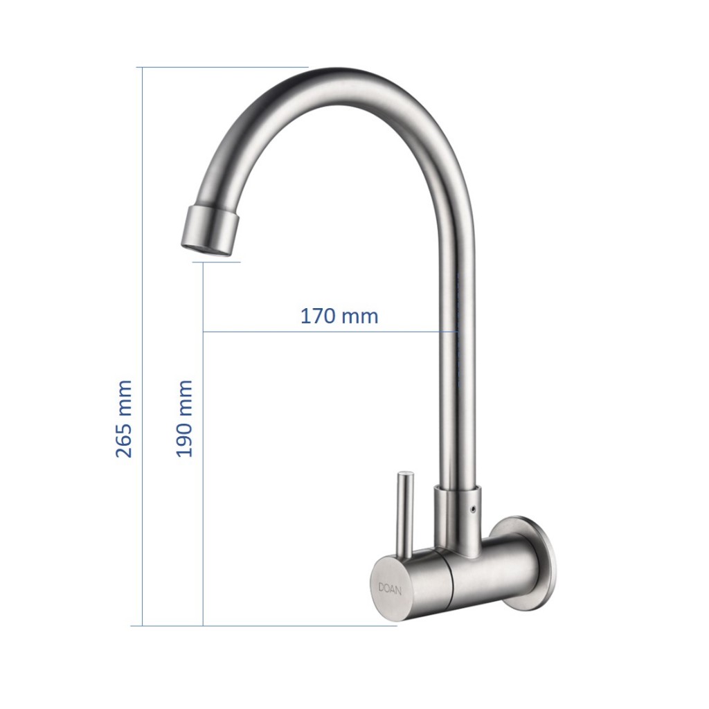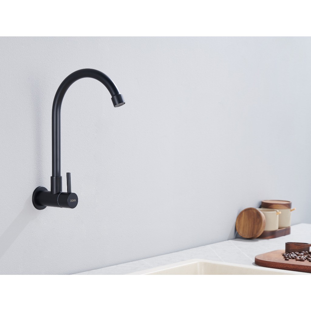 Torneira Inox Giratória Parede Longa Preta NOX01B Doan