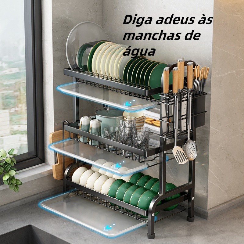 Escorredor Organizador de Louças 2 andar 3 andar Preto Aço Inoxidável Rack