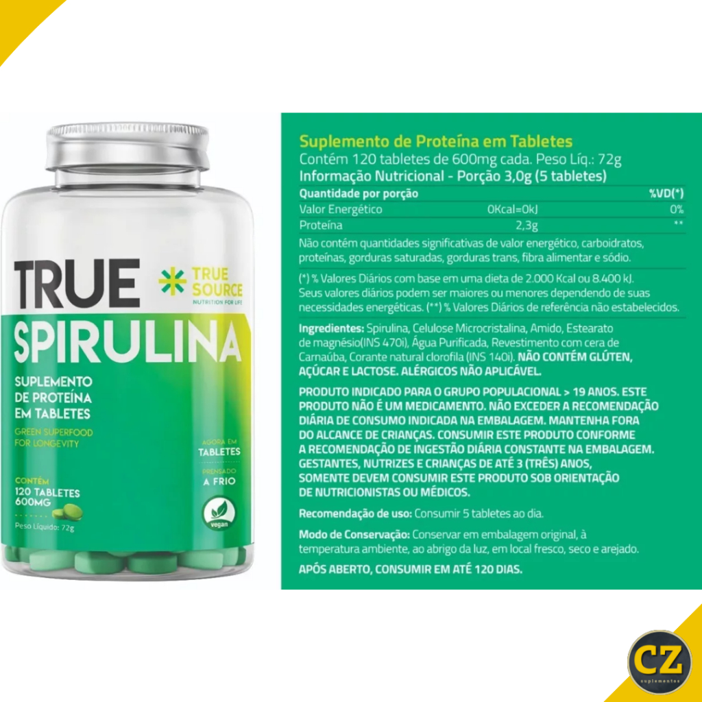 Spirulina 600mg (120 Tabletes) - True Source