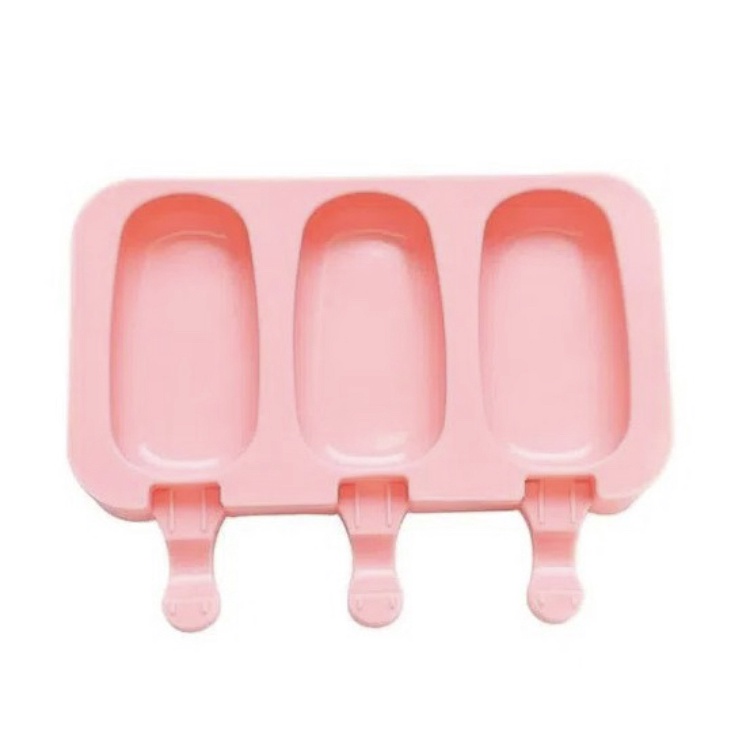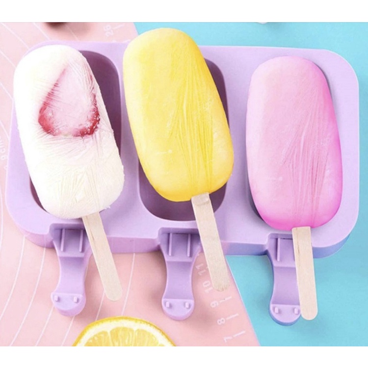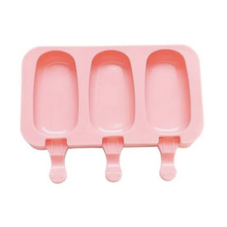 Forma Para Sorvete Picolé Silicone 3 Cavidades C/50 Palitos Rosa Lilás Vermelha