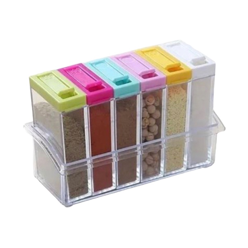Kit porta condimentos e temperos organizador, box com 6 potes de acrílico, 6 em 1,com tampas coloridas -Envio Rapido