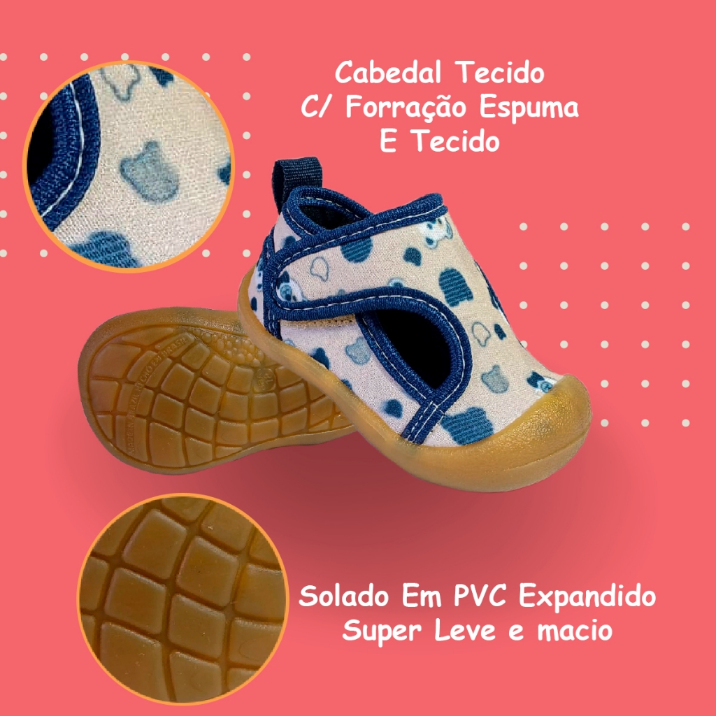 Tênis Sandália Bebê Estampada Marfim com Ajuste Prático e Confortável
