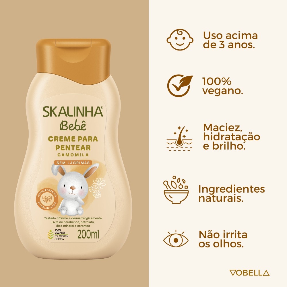 Creme Para Pentear Camomila Bebê Infantil Vegano Skala 200ml