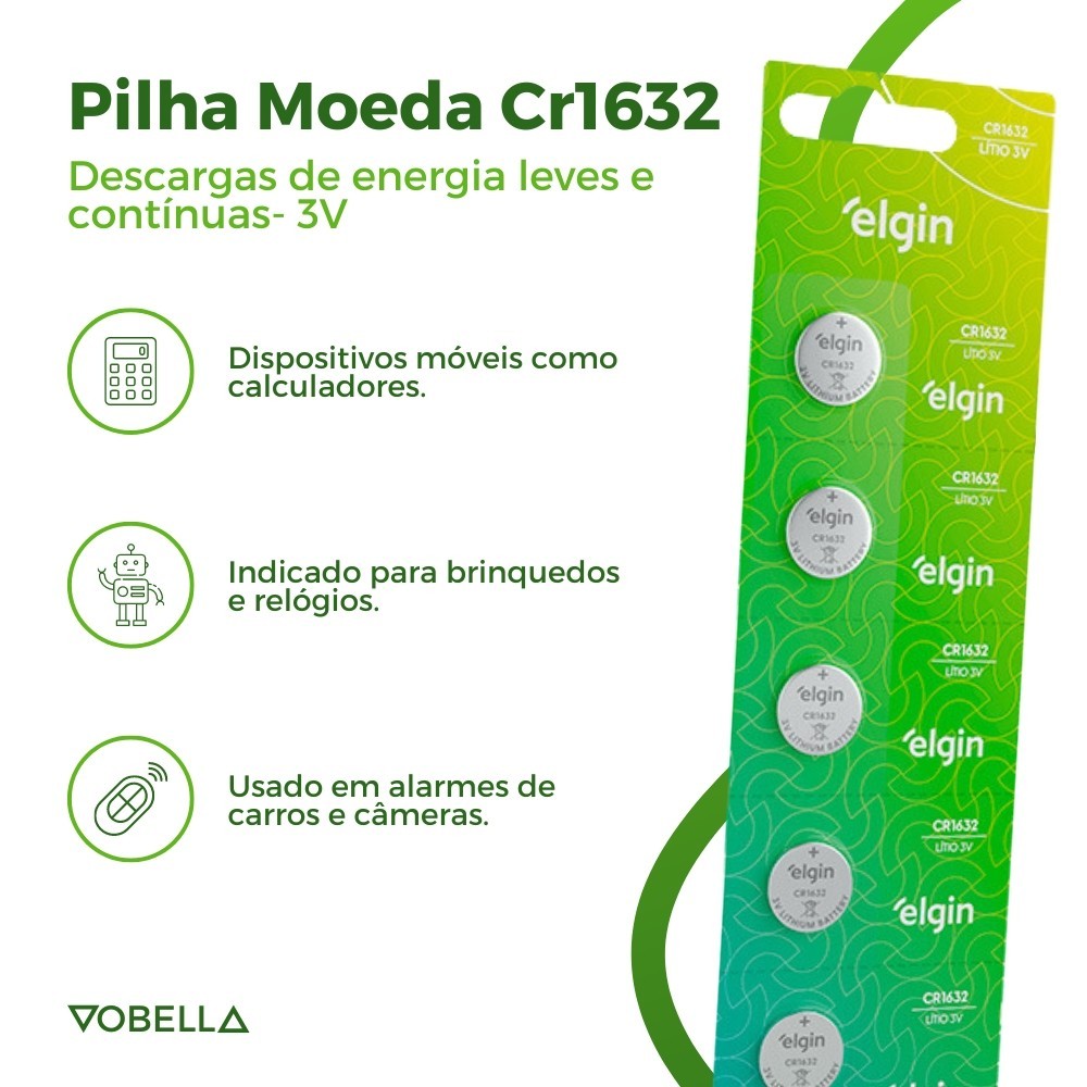 5 Baterias Pilha Moeda Cr1632 1 Cartela 3V Relógio Elgin