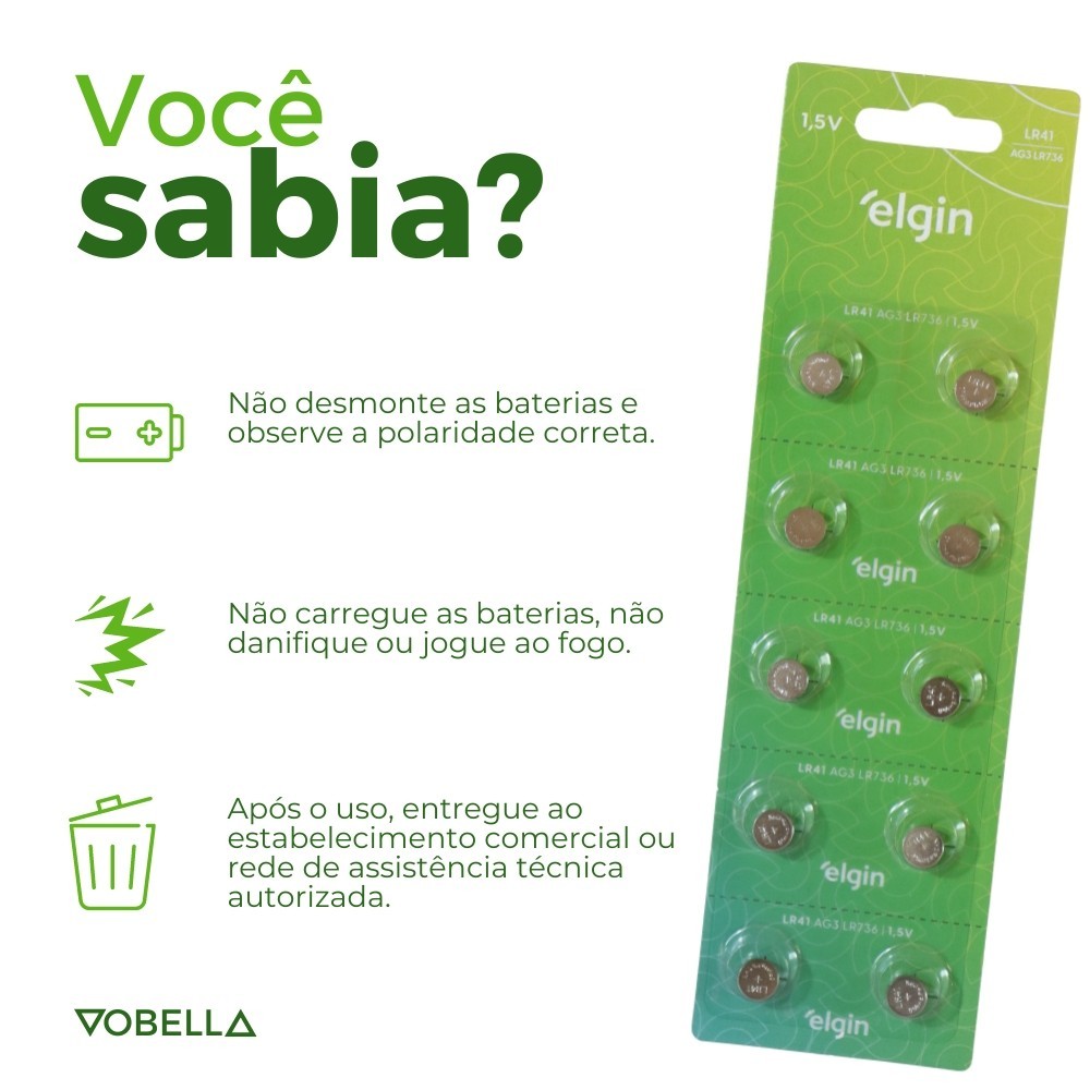 30 Baterias Pilhas Alcalina Lr41 1,5v Blister Cartela Elgin