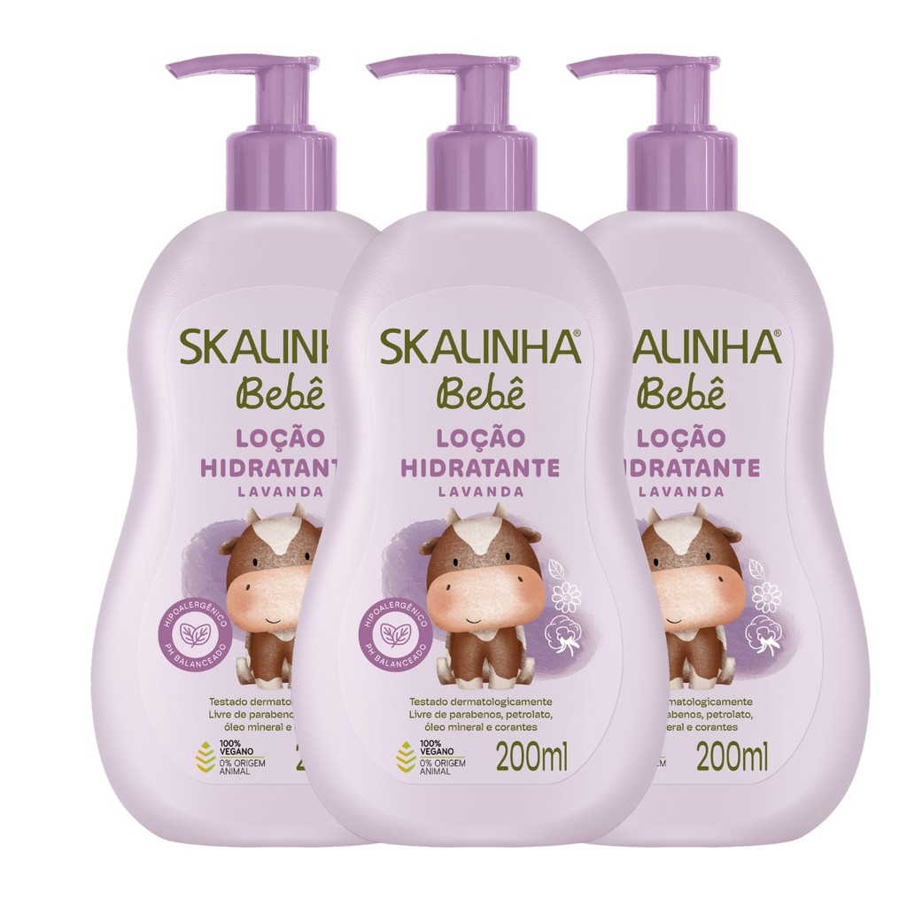Kit 3 Loção Hidratante Bebê Infantil Lavanda Vegano Skalinha