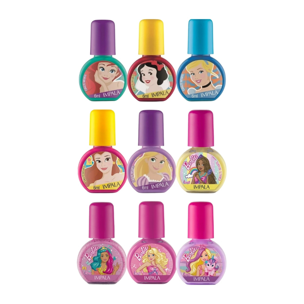 Kit Esmalte Infantil Princesas Barbie Stitch Disney Impala