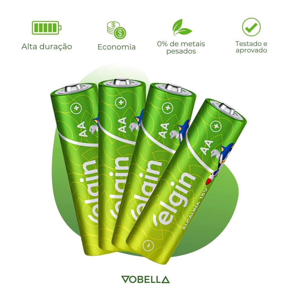 16 Pilhas Alcalina Aa Pequena 2a 1,5v LR6 8 Cartelas Elgin3