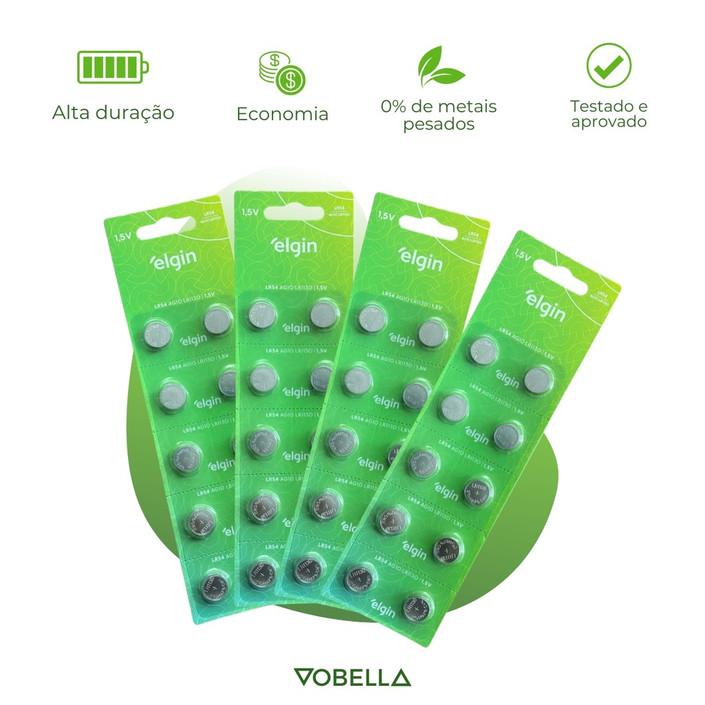 Kit 200 Baterias Pilhas Alcalina Lr54 1,5v 20 Cartela Elgin