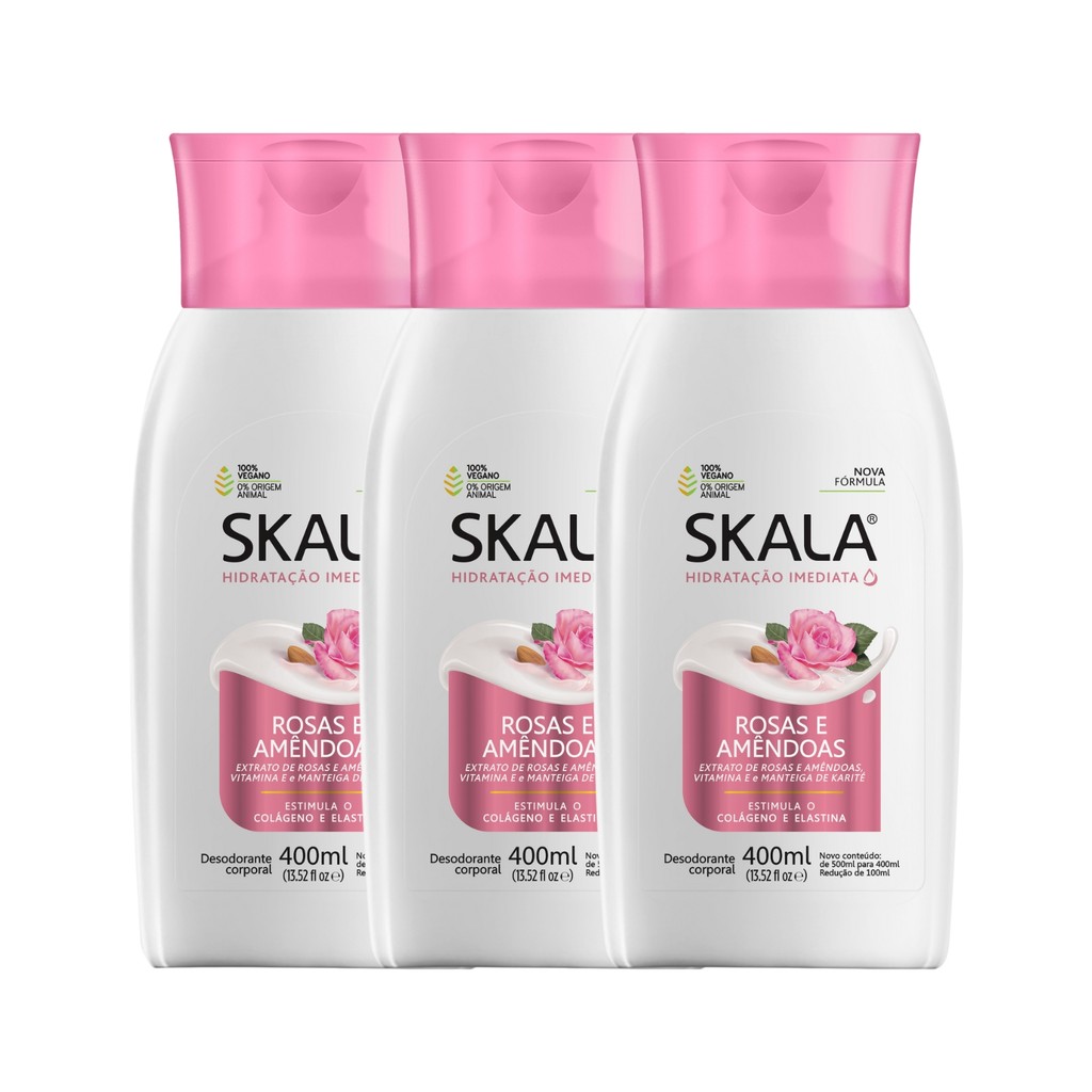 Kit 3 Loção Creme Hidratante Corporal Rosas E Amêndoas Skala