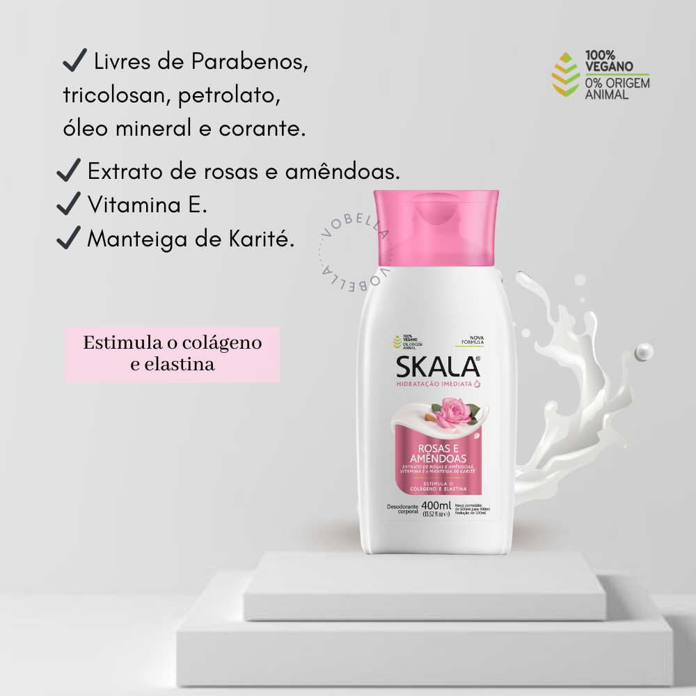 Kit 12 Loção Creme Hidratante Corporal Rosas Amêndoas Skala