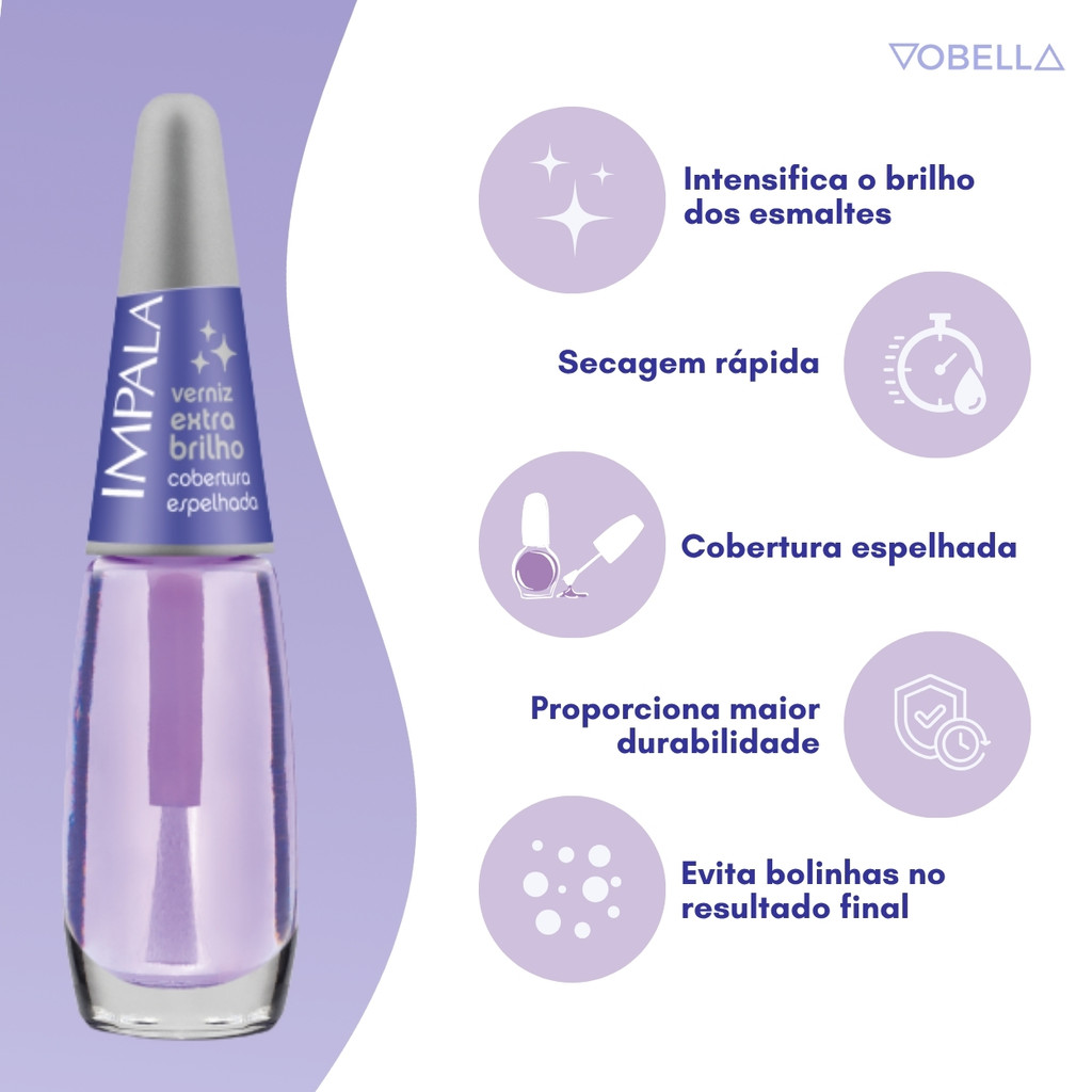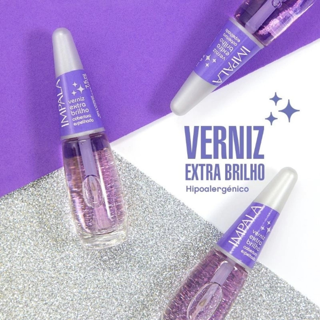 Kit 2 Esmalte Impala Base Verniz Extra Brilho Espelhado