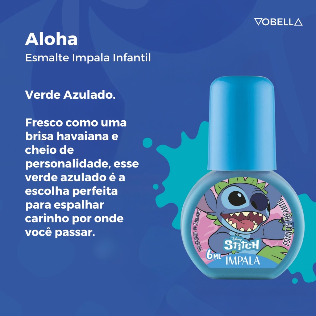 Kit 5 Esmaltes Infantil Coleção Stitch Disney Unha Impala