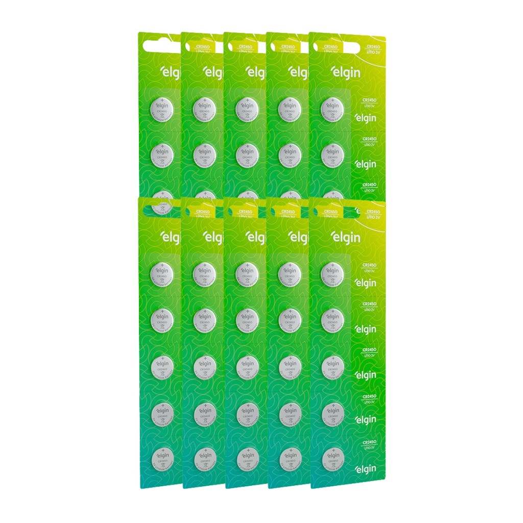 Kit 50 Bateria Pilha Moeda Cr2450 10 Cartela Brinquedo Elgin
