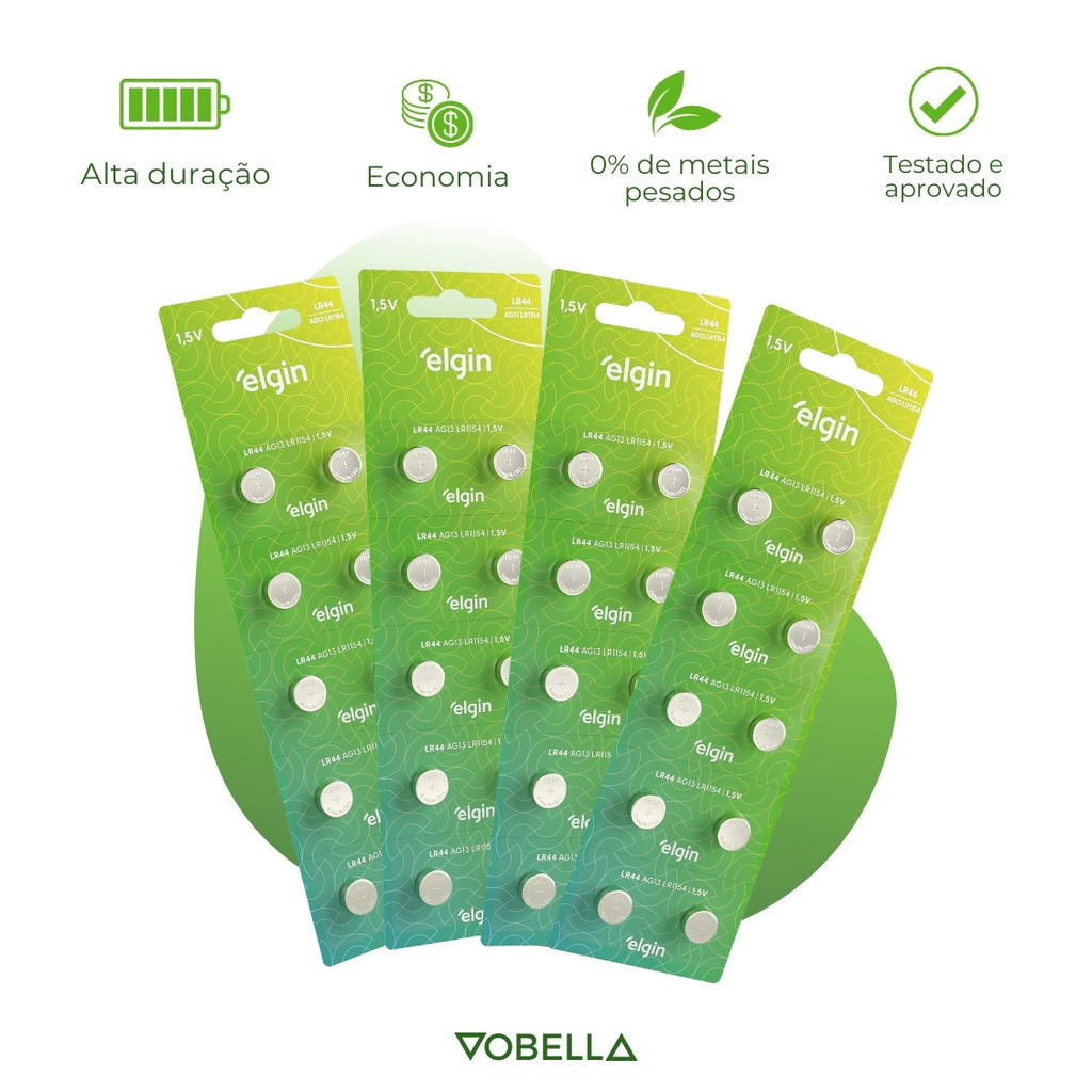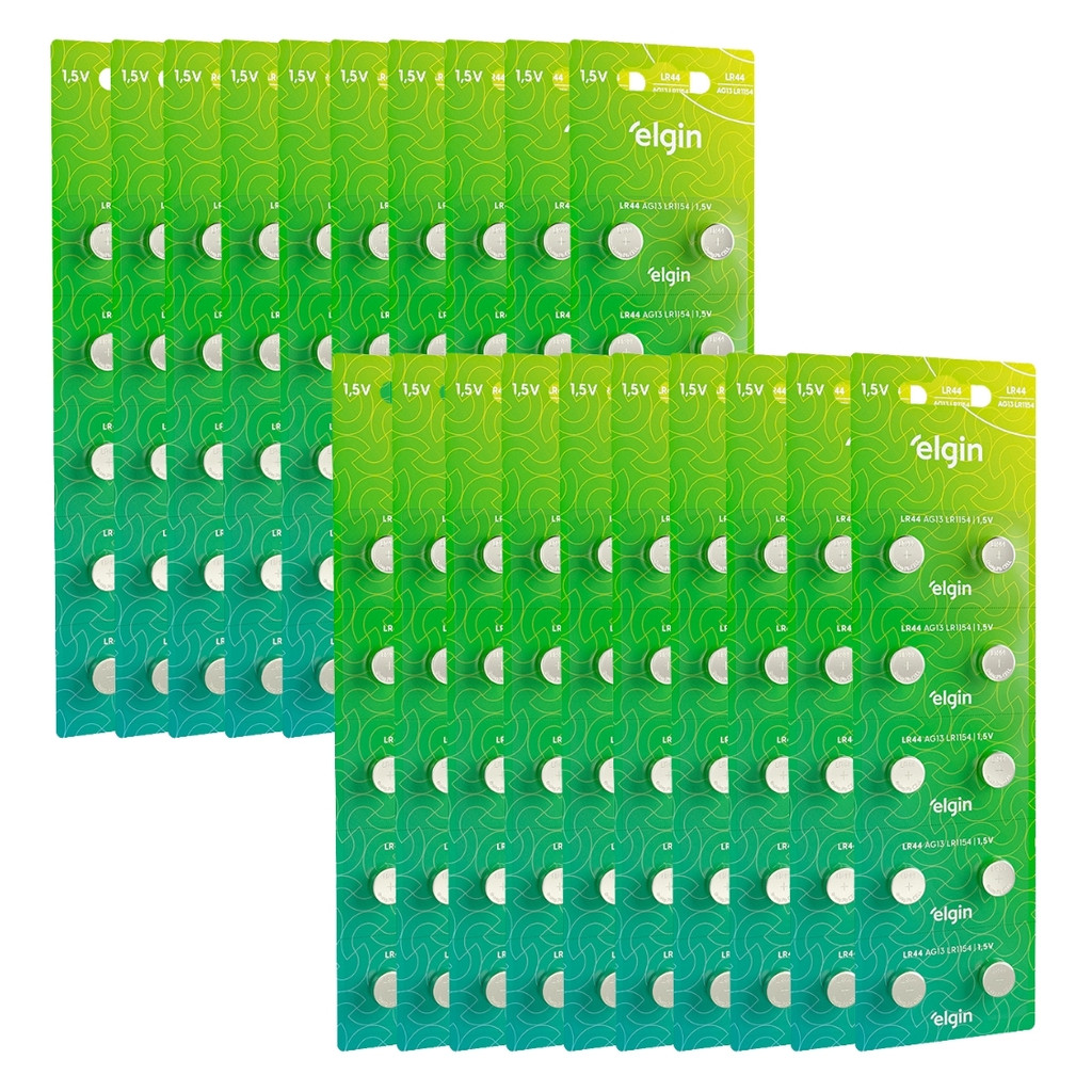 Kit 200 Pilhas Bateria Alcalina Lr44 1,5v Cartela Elgin