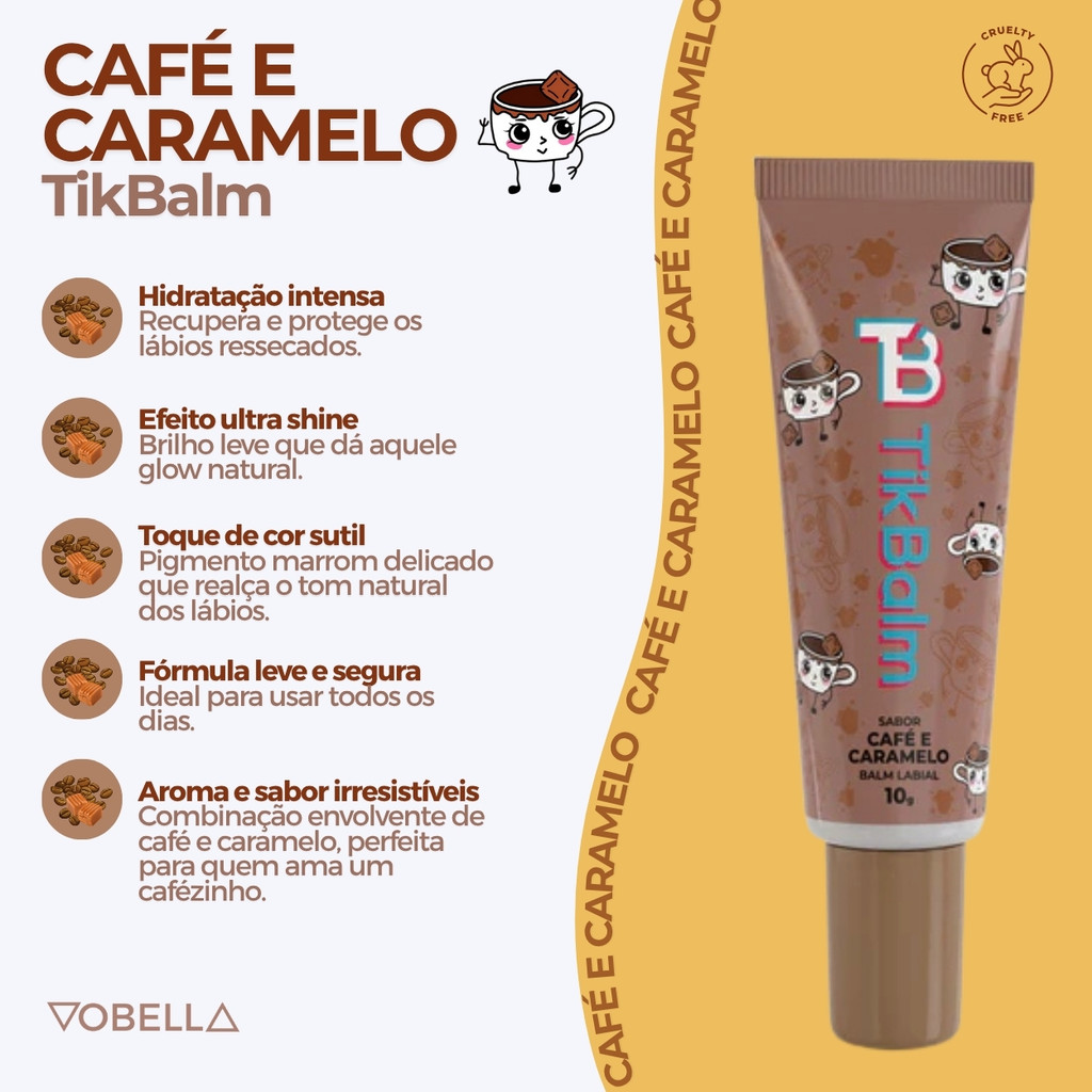 Hidratante Labial Café Caramelo Brilho Nutrição TikBalm 10g