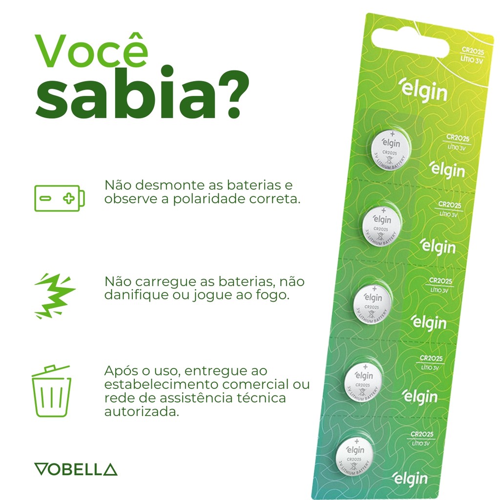 Kit 10 Baterias Pilha Moeda Cr2025 3v 2 Cartela Elgin