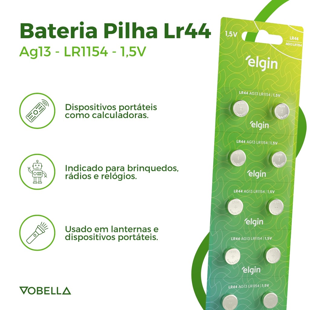 Kit 100 Bateria Pilha Alcalina Lr44 1,5V Relógio Elgin