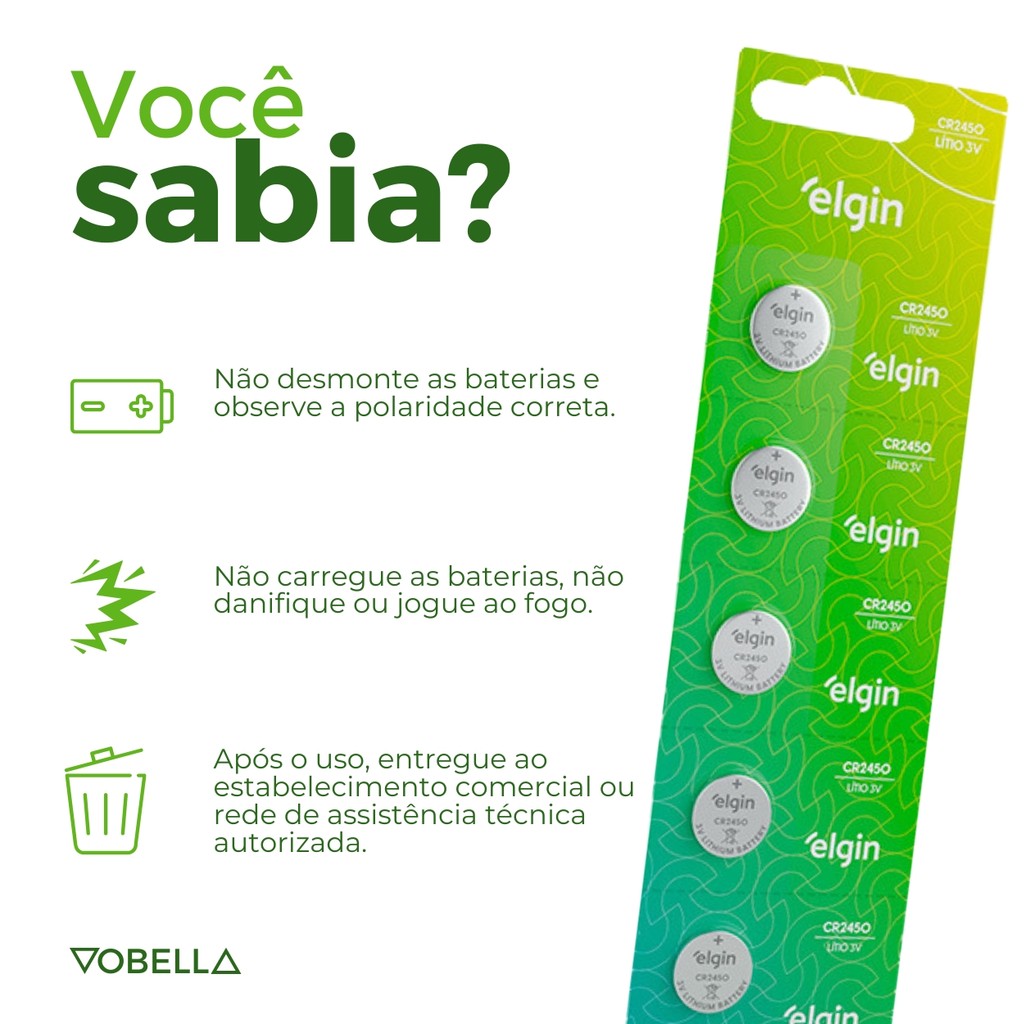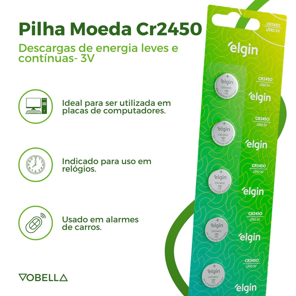 Kit 30 Baterias Pilha Moeda Cr2450 6 Cartela Brinquedo Elgin