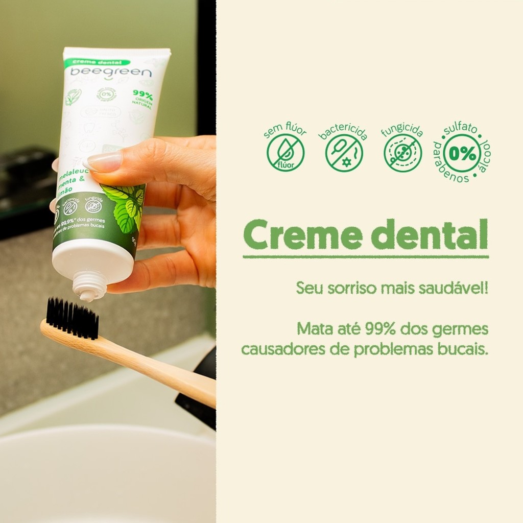 Kit 2 Creme Pasta Dental Natural Menta Melaleuca Bee Green