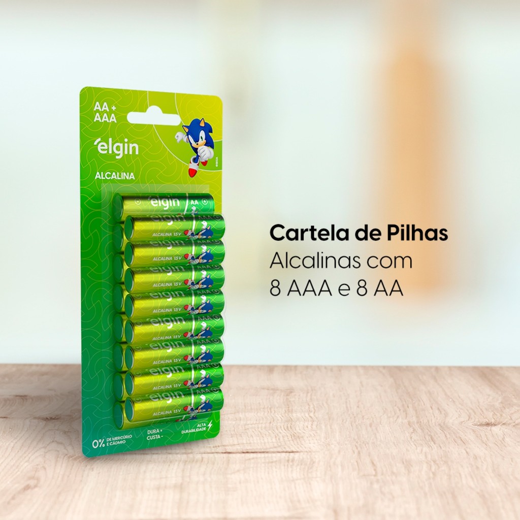 Kit Pilhas Alcalina AAA Palito E AA Pequena 16 Un Elgin