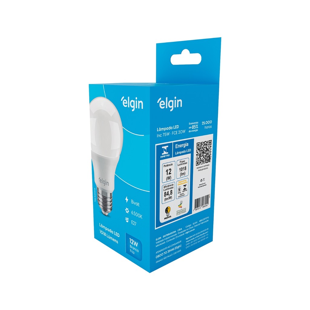 Lâmpada Bulbo Led 12W 6500K Branca Fria Bivolt Luz E27 Elgin