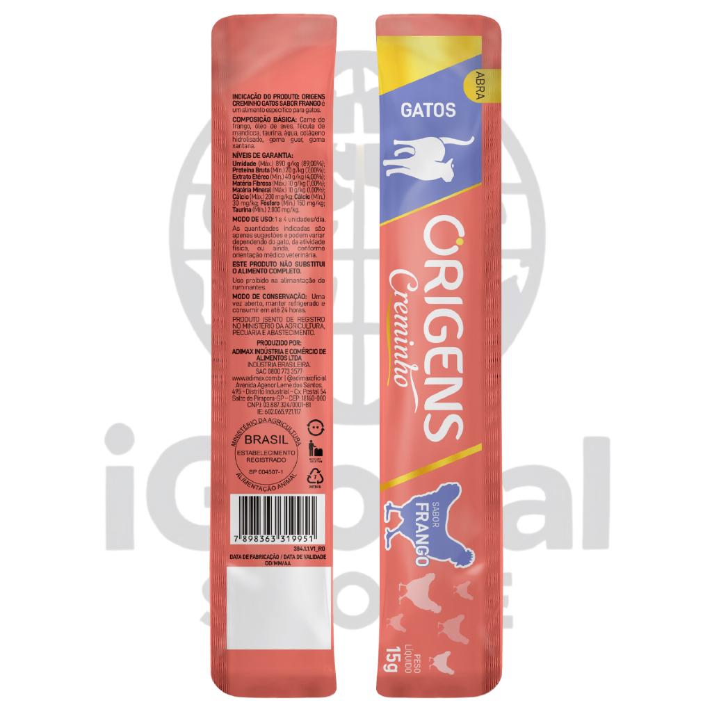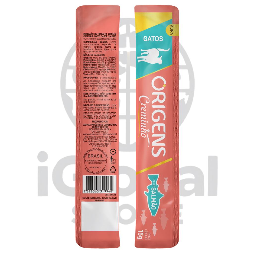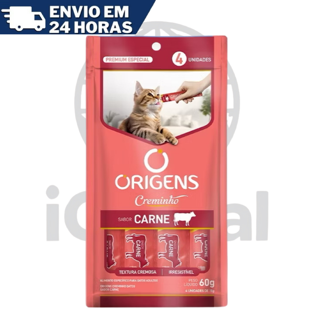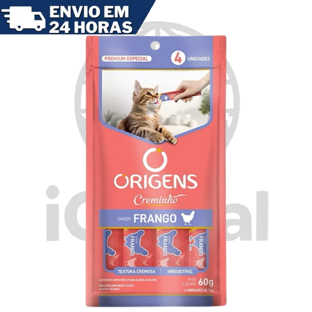 PETISCO CREMINHO ORIGENS MELHOR QUE CHURU SALMÃO CARNE FRANGO PARA GATOS 15 G