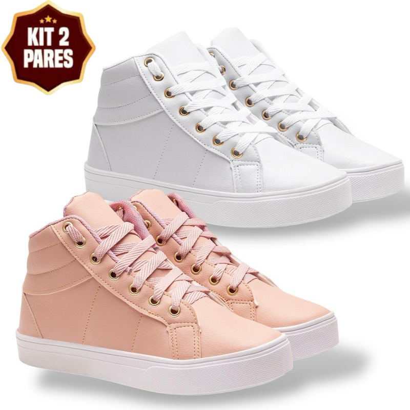 Kit 2 Pares Botinha Coturno Cano Curto Casual Feminina Moderna Minimalista - Promoção Envio Imediato