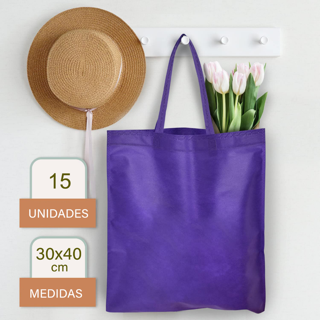 15 Unidades Sacola Ecobag Reutilizável Ecológica Tnt 30x40 cm